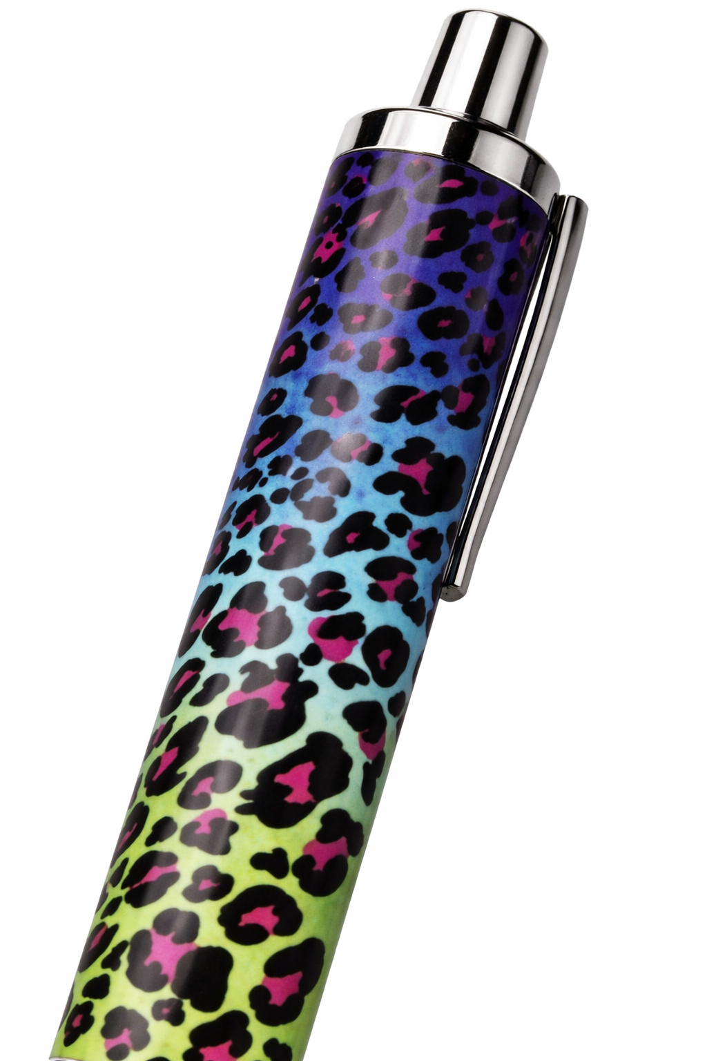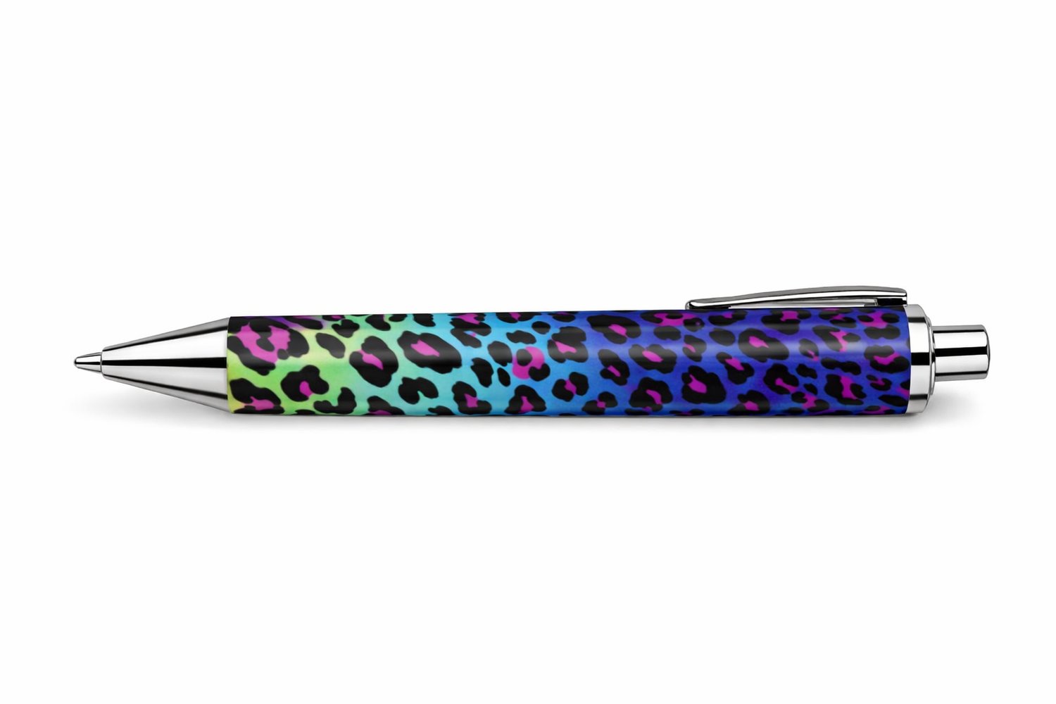 Featuring a vibrant blend of purple, blue, and green tones with black leopard print and pops of pink, this full coverage design creates a trendy and eye-catching finish.