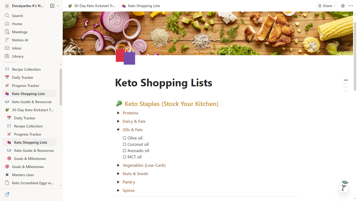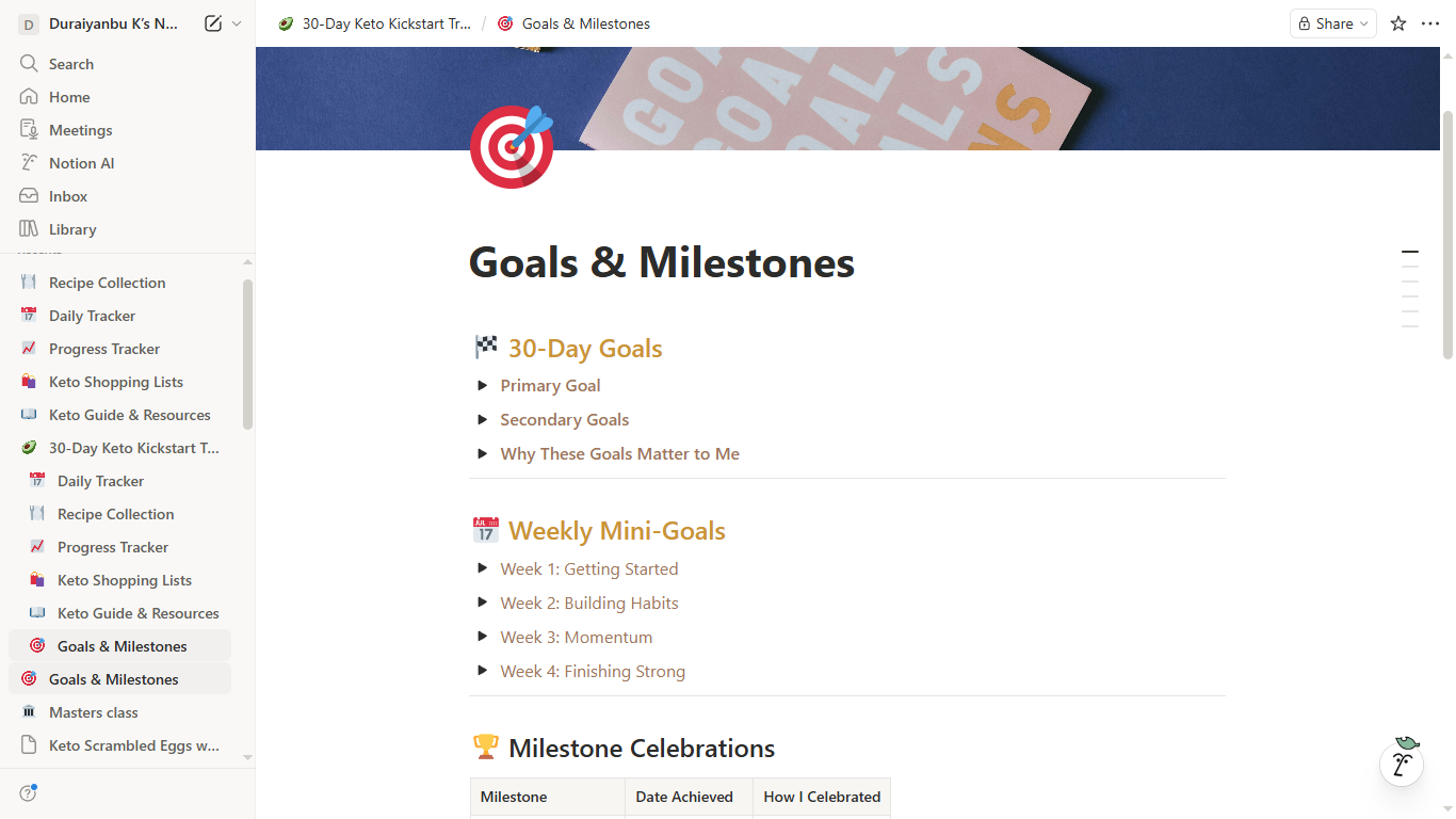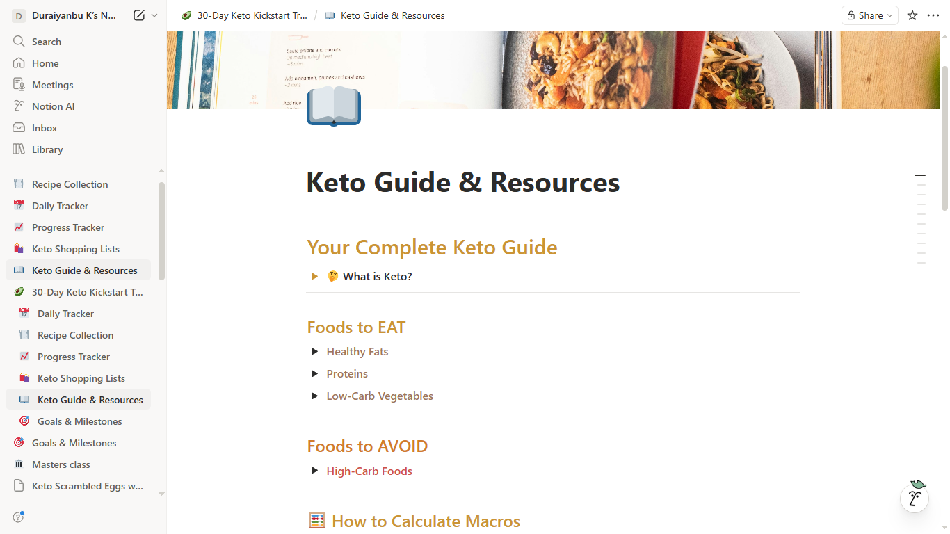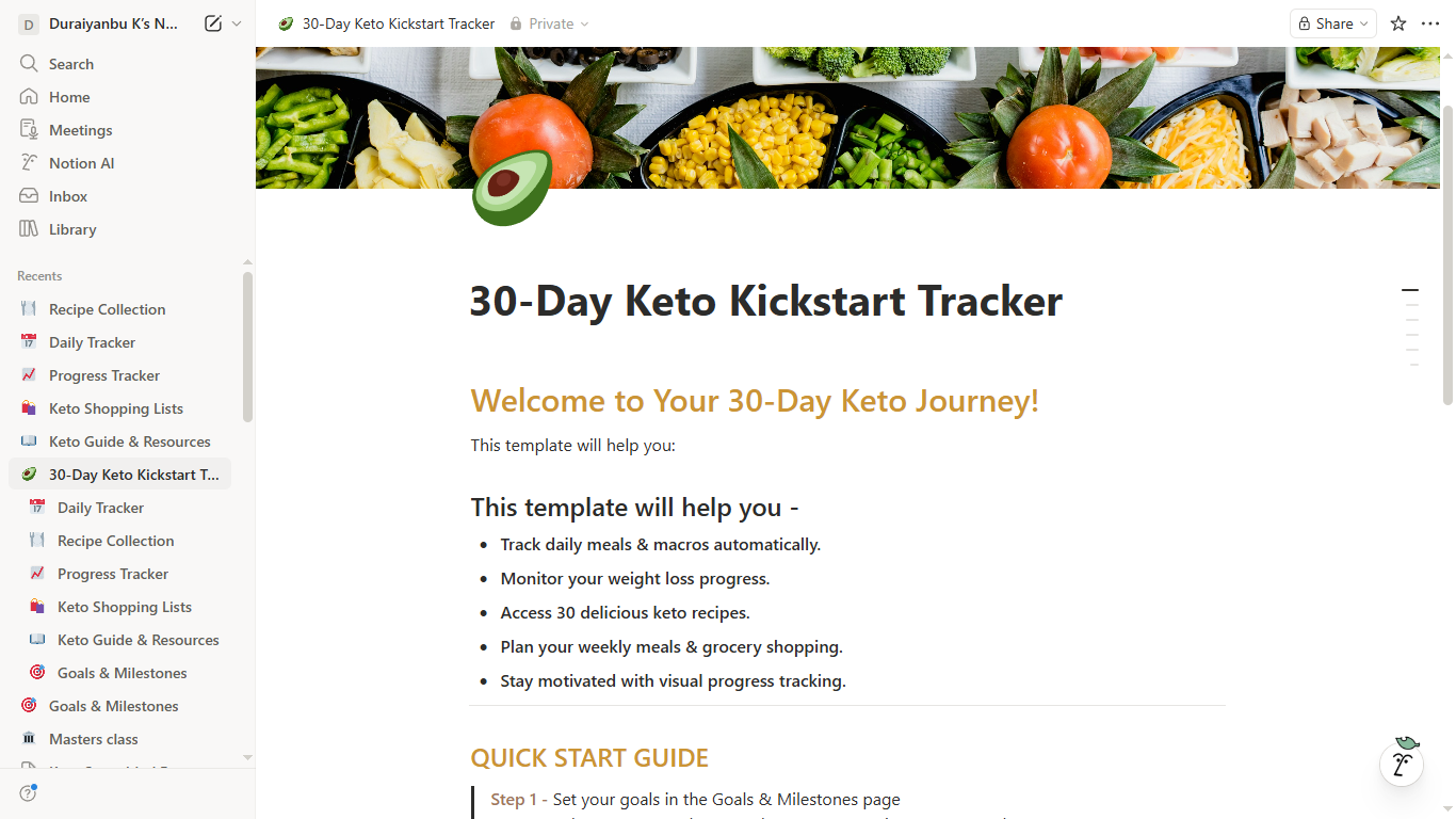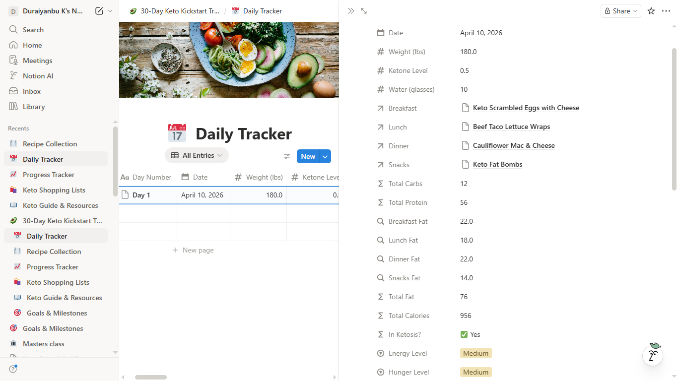 30-Day Keto Kickstart Meal Planner & Tracker - Notion Template