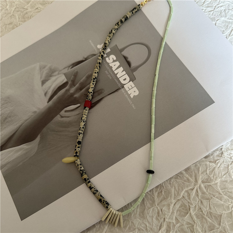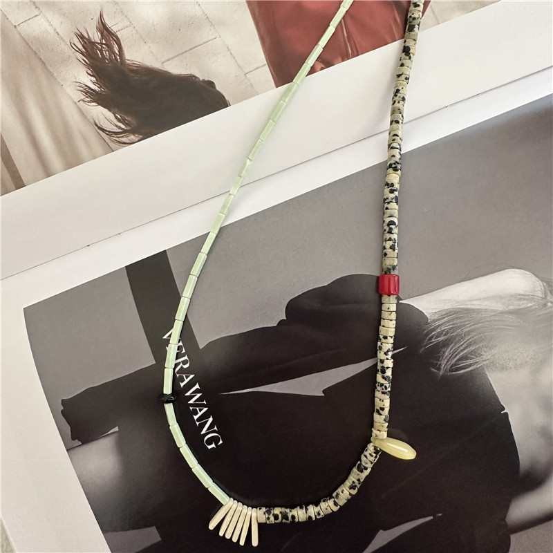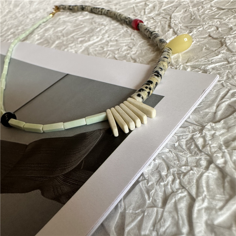 Handmade natural stone beaded boho asymmetric necklace