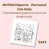 20 Cute Halloween PNGs – Vol.1 | Personal Use | Kawaii Transparent Clipart for Cards, Planners & Crafts