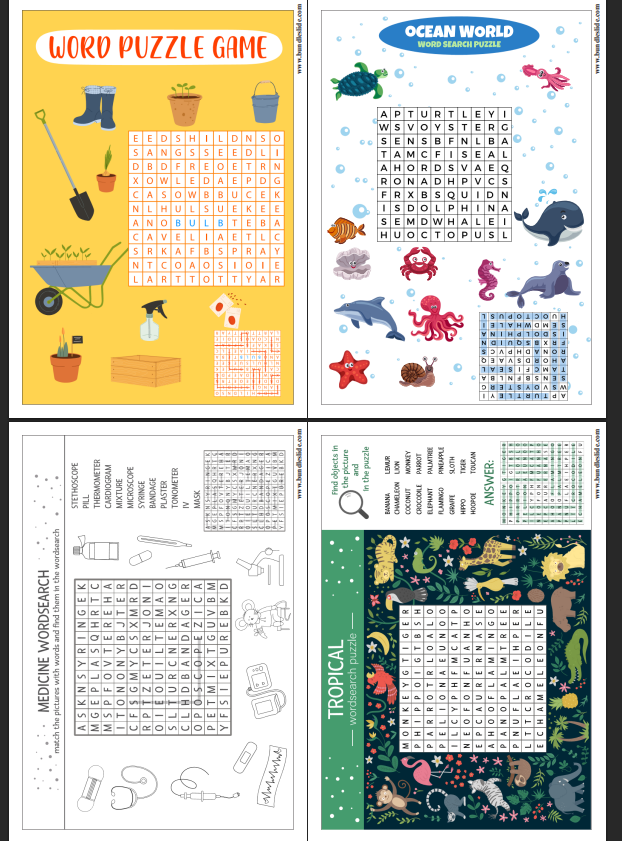 300 Word Search Worksheets final, Cross Words, Puzzles...