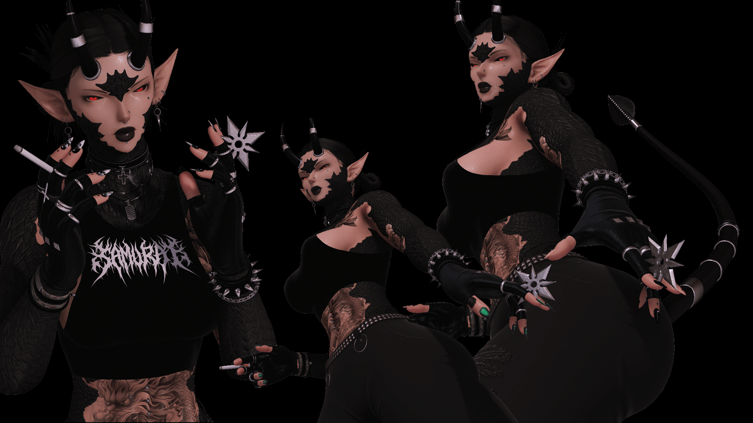 - Cigarette and shuriken are weighted on index fingers. Did this so it's easier and quicker to pose instead of using minions/props.