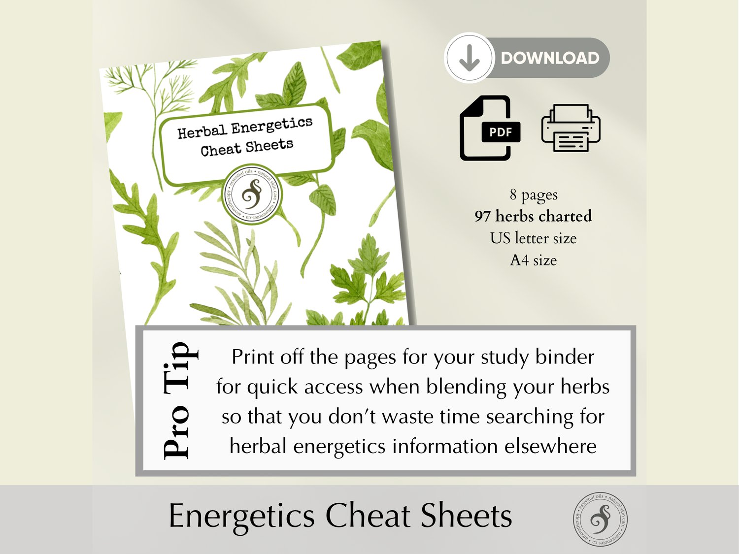 Herbal energetics cheat sheets - quick reference charts for 97 herbs