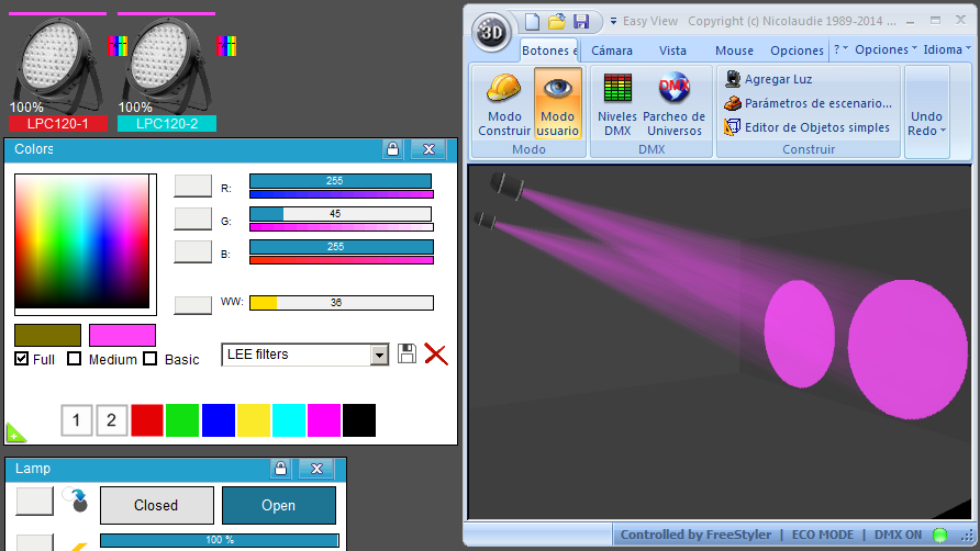 Esta Librería SSL2 está optimizada para trabajar con Magic 3d Easy View. Es decir para ver una representación 3D de las secuencias que estemos realizando con Freestyler, QLC+ o cualquier otro soft que se conecte con Magic 3d.