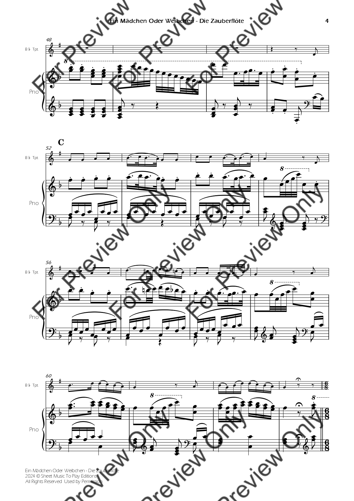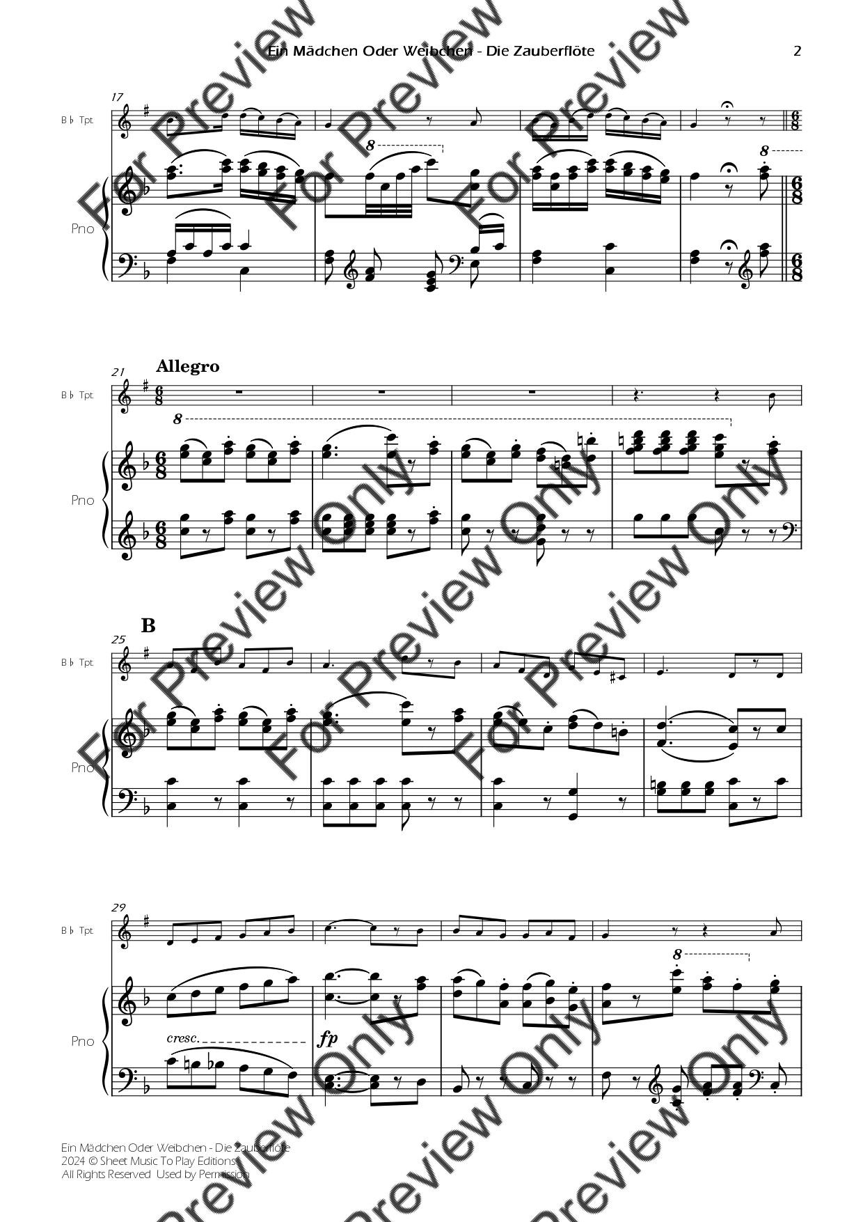 Mozart - Ein Mädchen Oder Weibchen - Bb Trumpet and Piano
