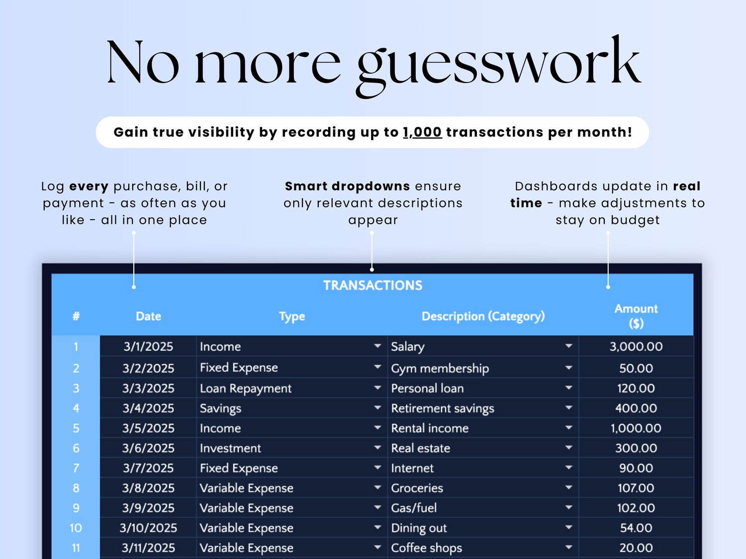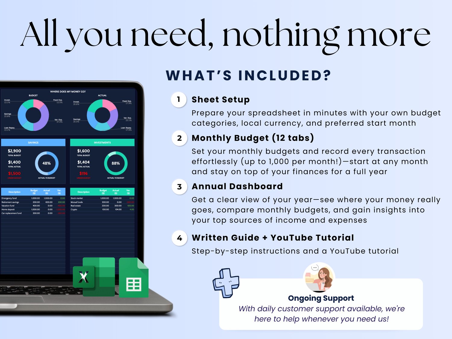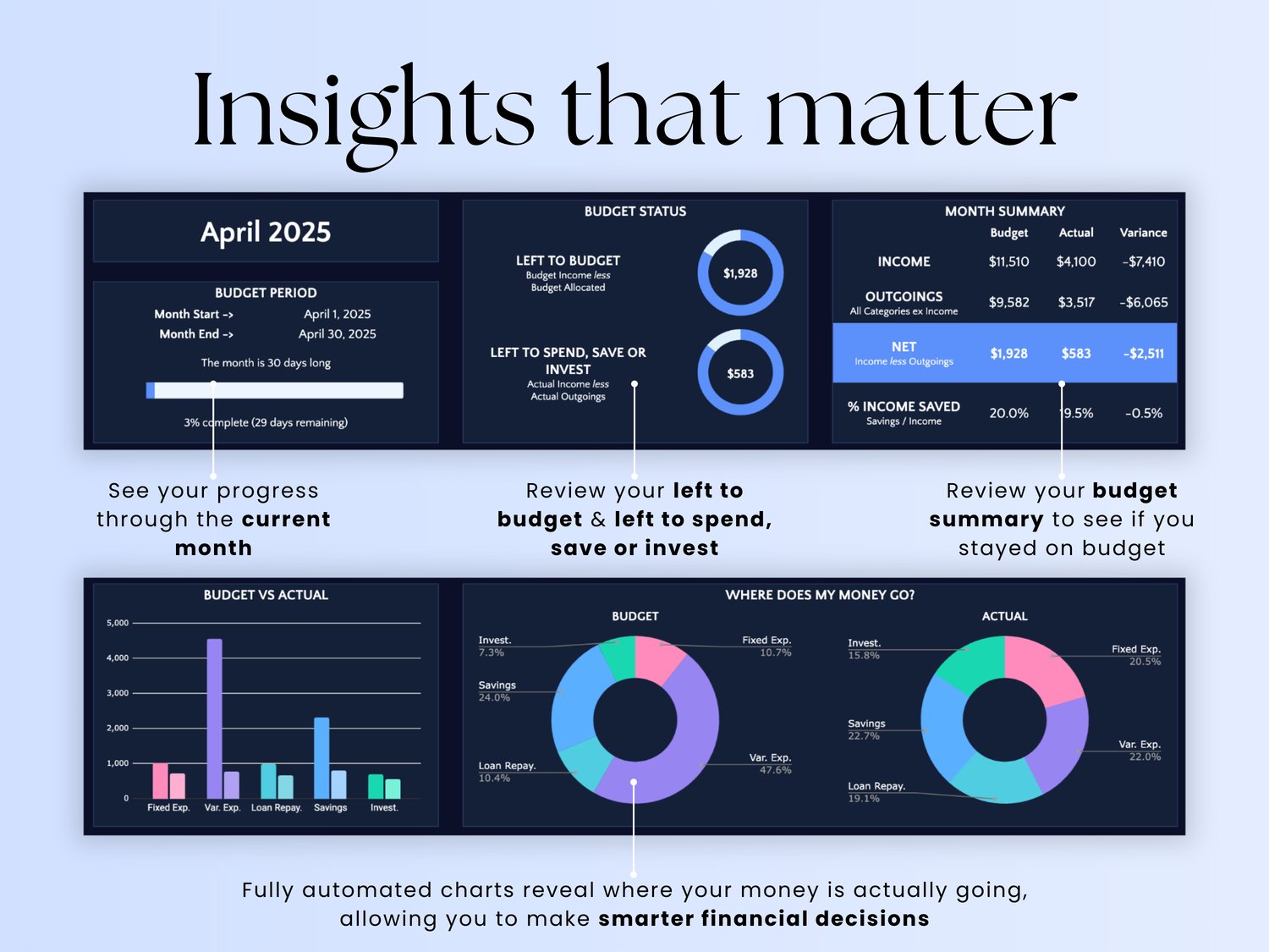 ✅ Clear & Simple Budgeting – Track income, fixed expenses, variable expenses, savings, and more—all in one place