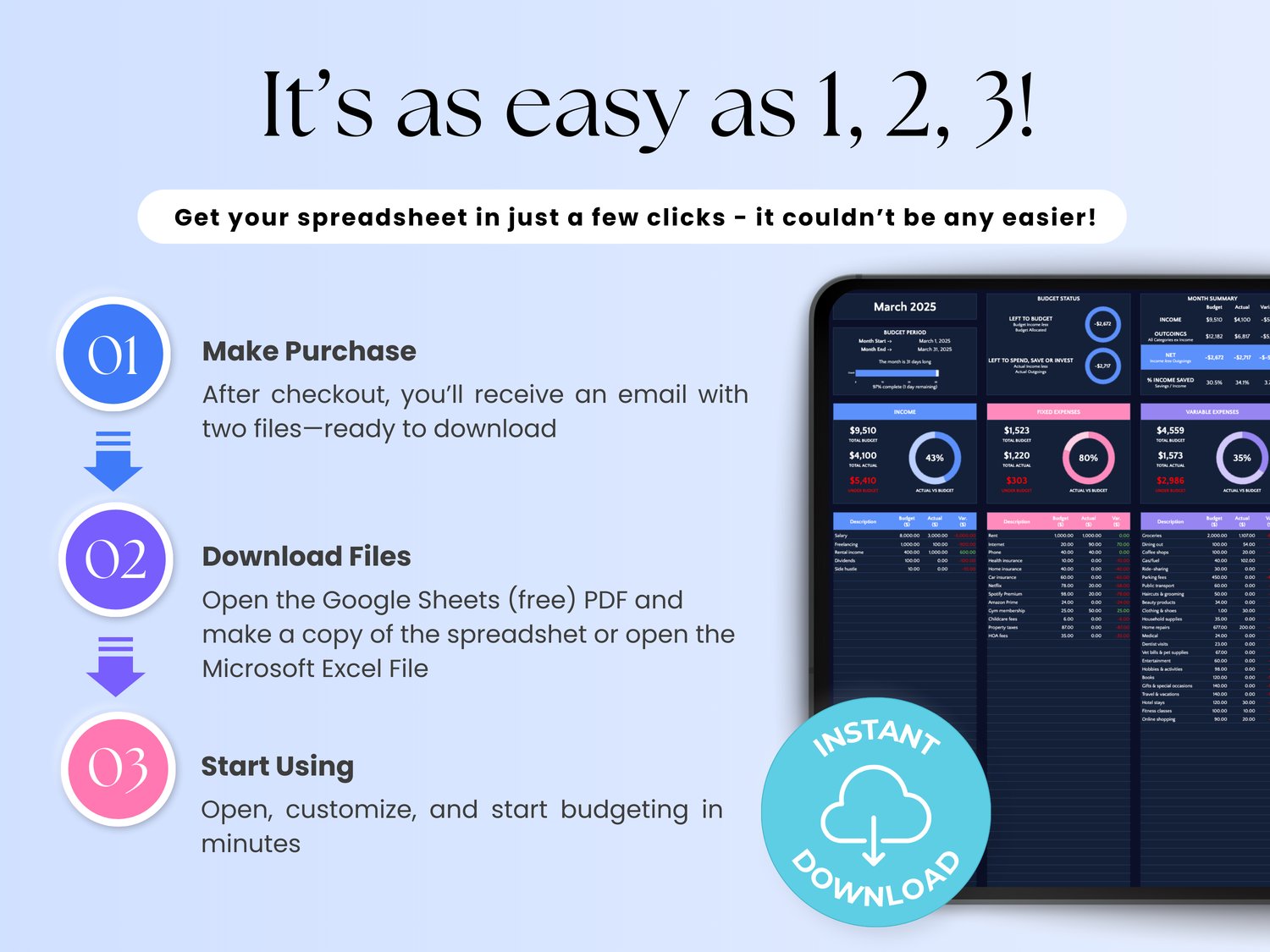 ✔️ Download a PDF file (for Google Sheets access) and/or Excel file, both instantly accessible via your order confirmation email