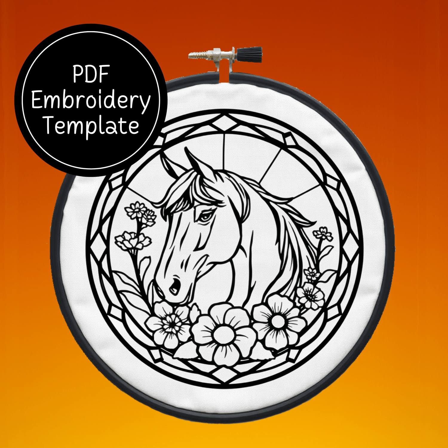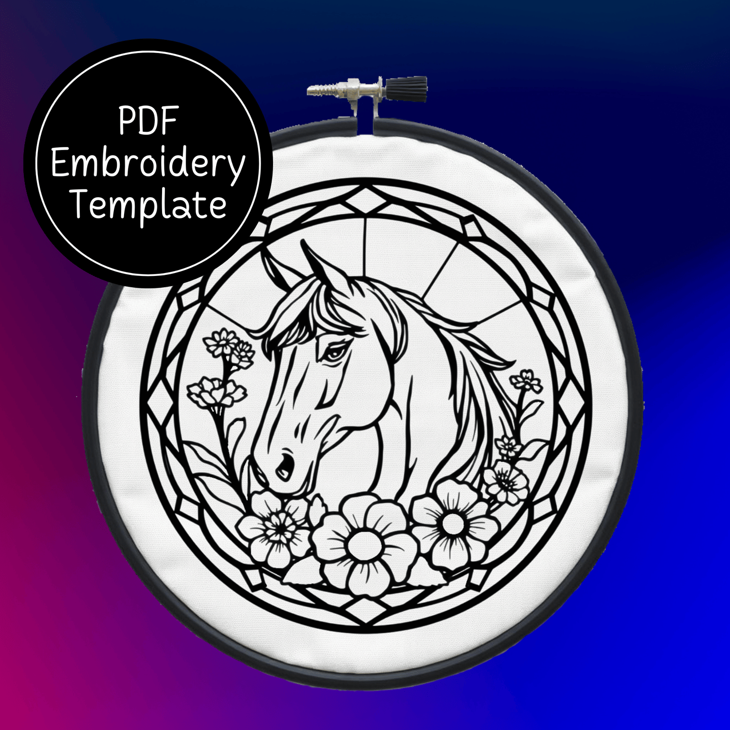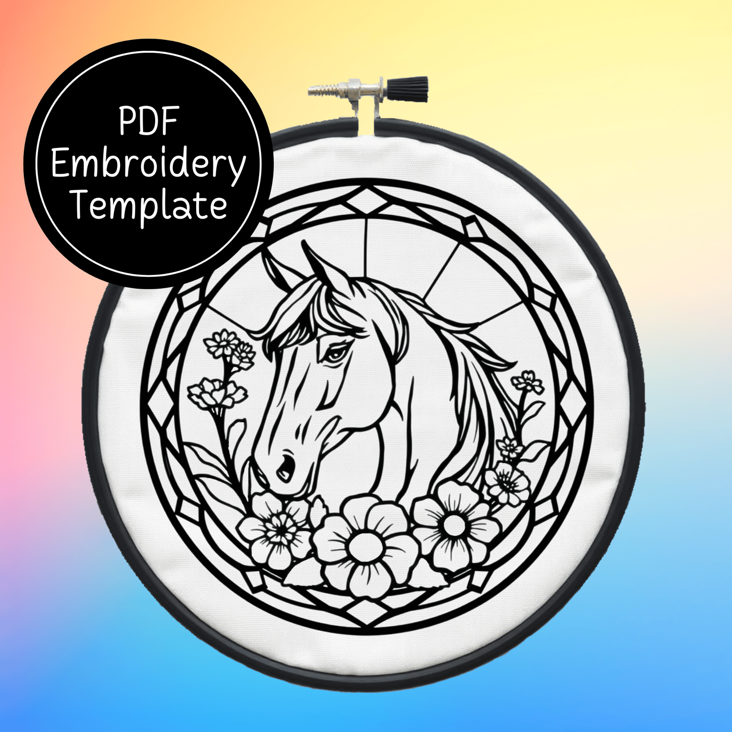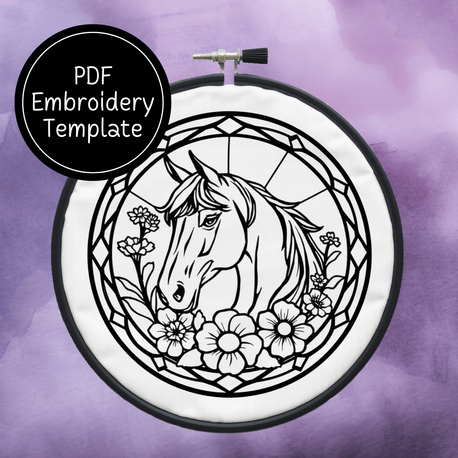 Stained Glass Horse Hand Embroidery Pattern DIY Equestrian Design For Hand Stitching - Instant Download
