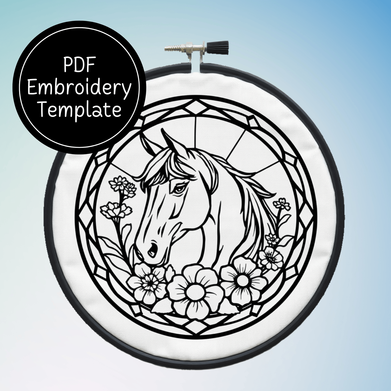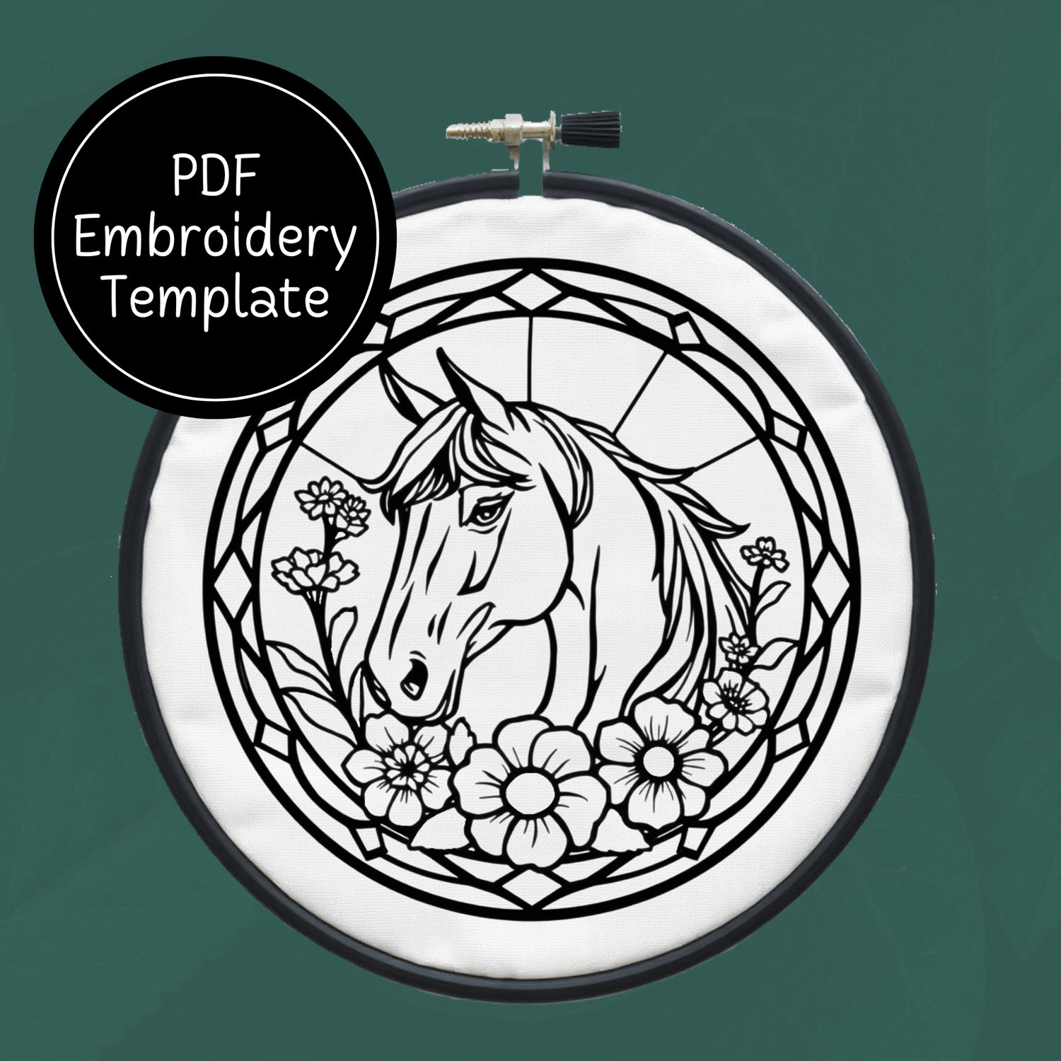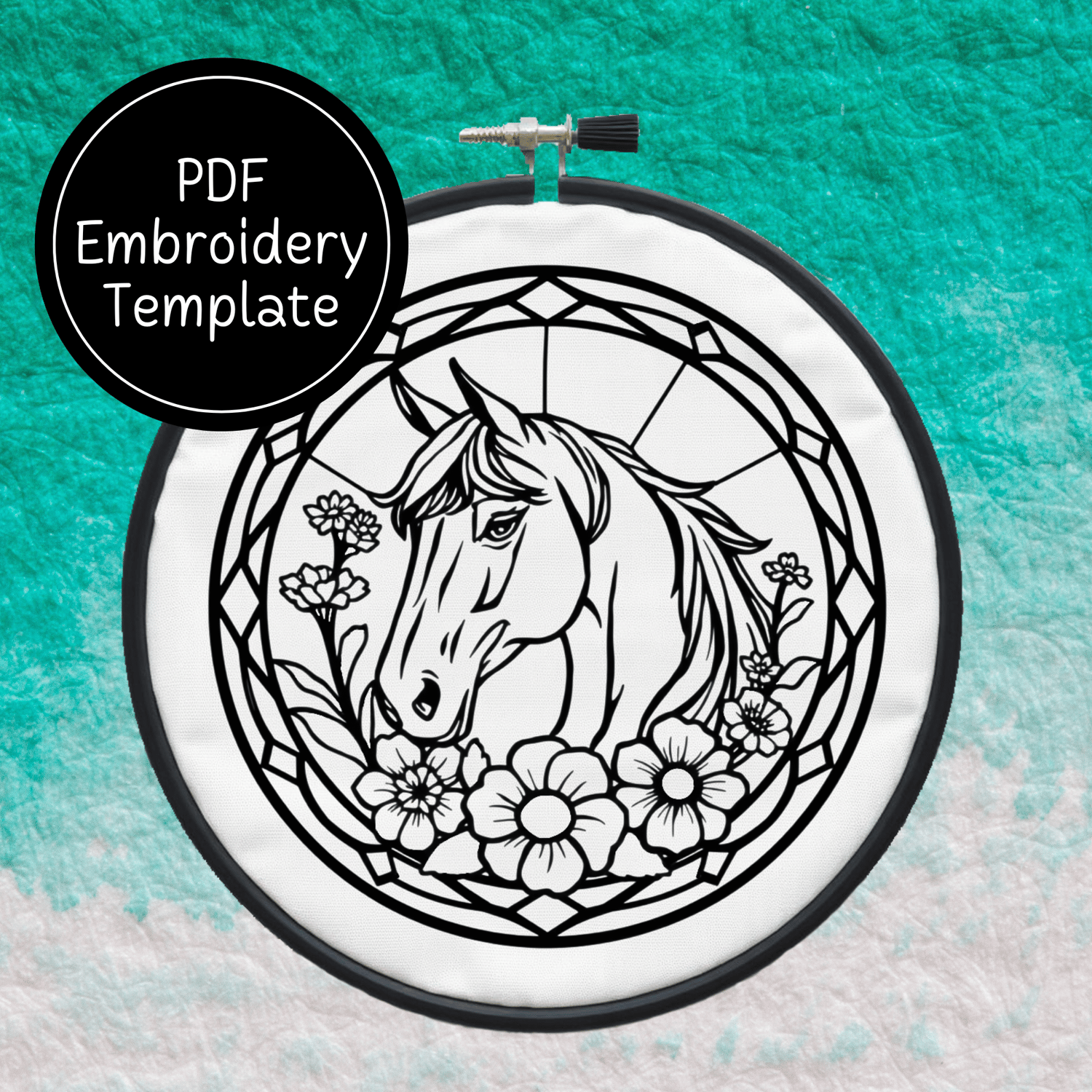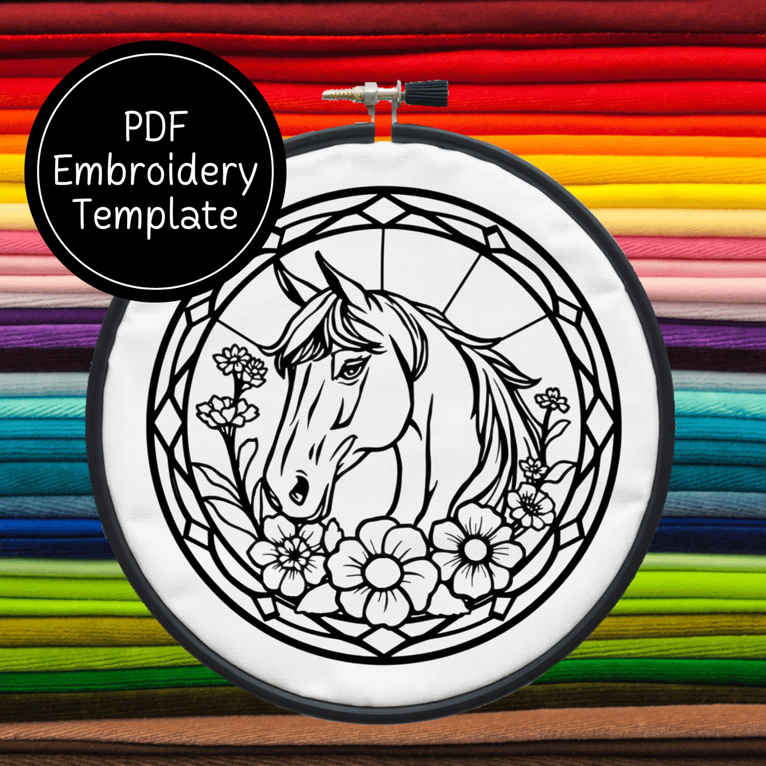 Stained Glass Horse Hand Embroidery Pattern DIY Equestrian Design For Hand Stitching - Instant Download