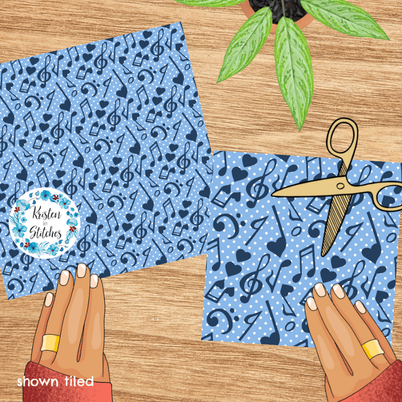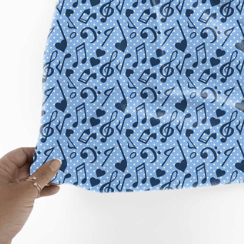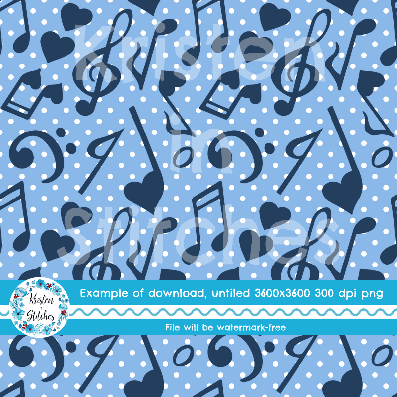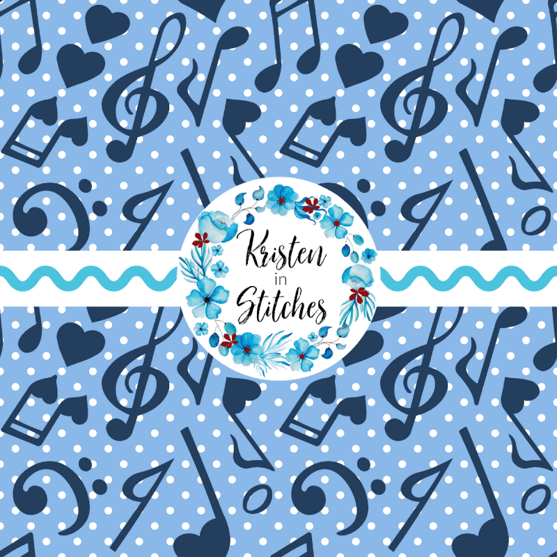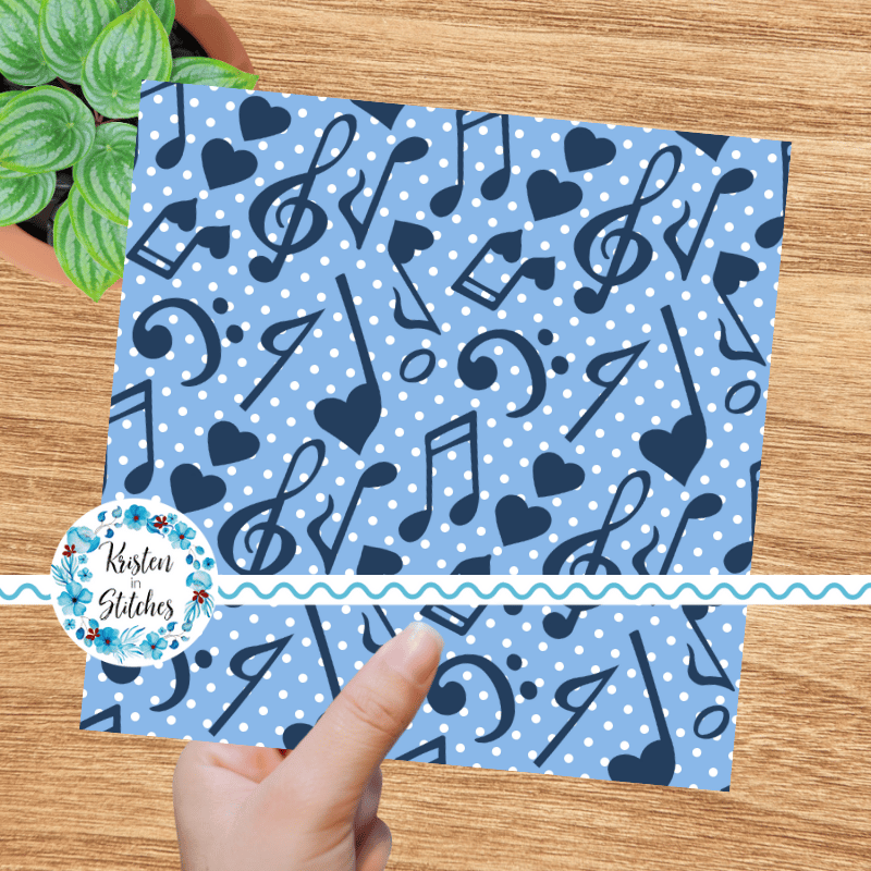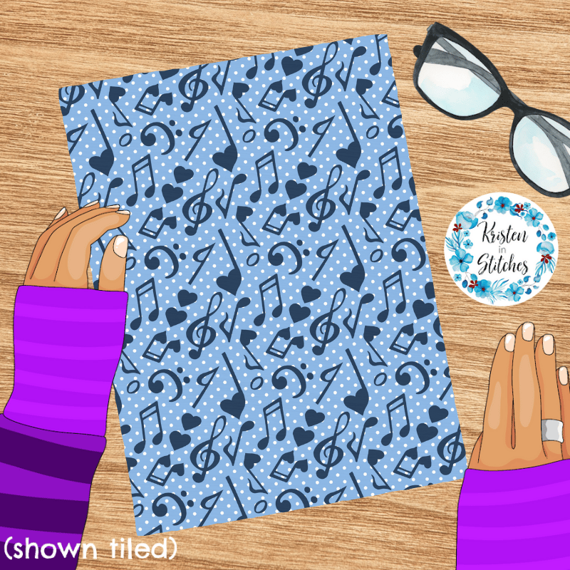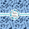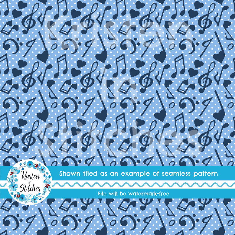 Music Love Notes Seamless Pattern, Blue Valentine Hearts