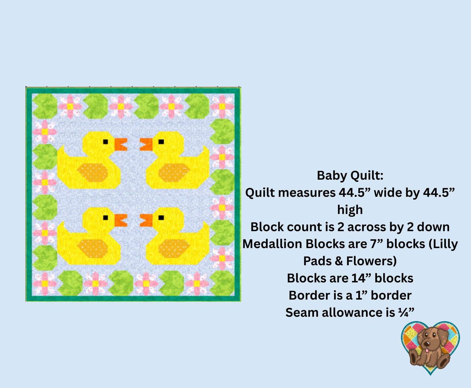 *Note: This pattern includes instructions for a baby (44.5" X 44.5") and lap (64.5" X 64.5") size quilt and pillow (29.75" X 20").* Blocks are traditional pieced blocks.