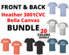 Front and Back Bella Canvas 3001 Heather Colors Mockup Bundle, White Background, Unisex Design Template, Print on Demand Mockup Bundle
