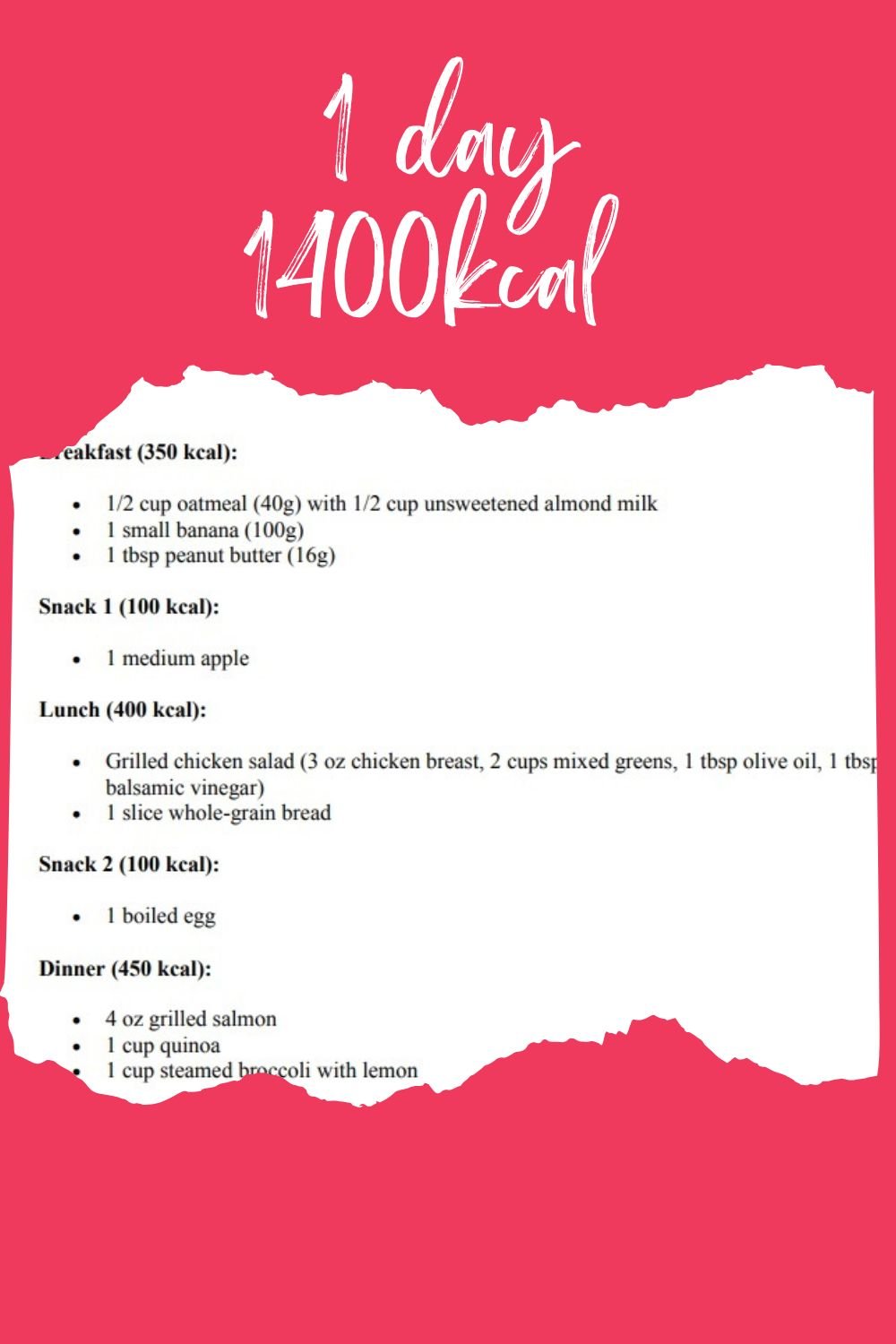 - ๐ฅ 14-Day Meal Plan (1400 kcal/day) โ Includes breakfast, lunch, dinner, and snacks