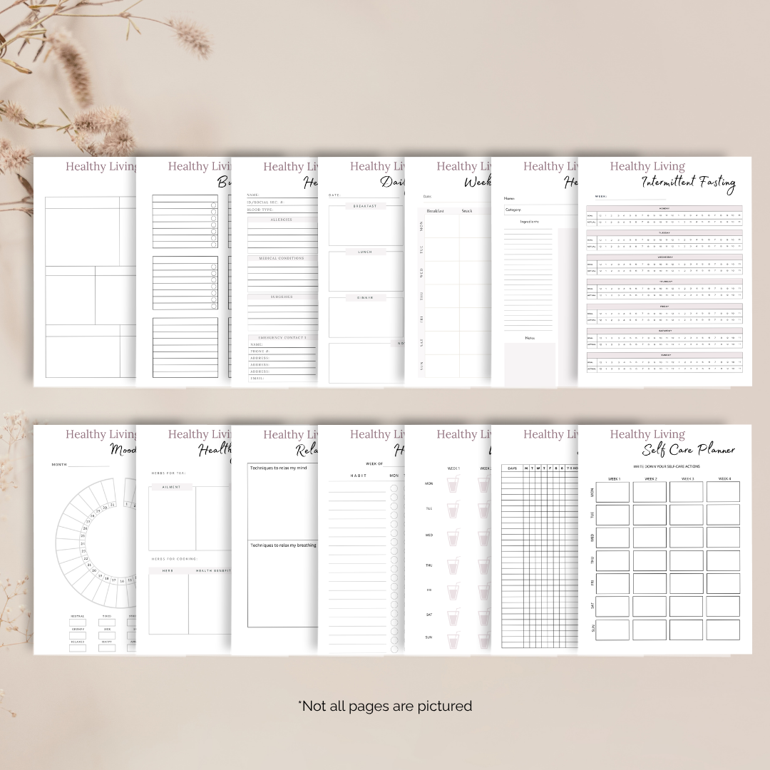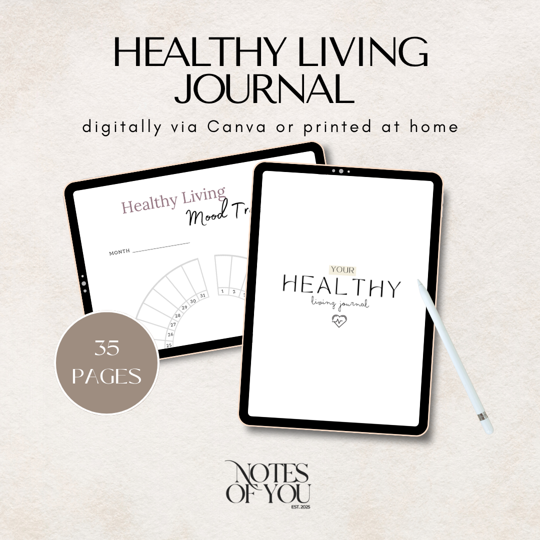 Healthy Living Journal β 35-Page A4 Canva Template | Wellness Tracker, Daily Routines, Selfcare Planners & Goal Setting (Printable & Editable)