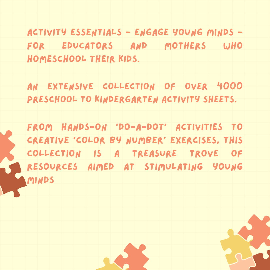 4000+ Activity Essentials - Engage Young Minds - For educators and Mothers who home-school their kids.