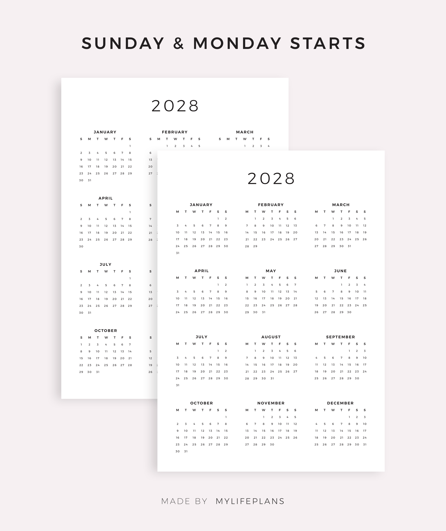 2028 Year Calendar Printable, A4/Letter Size