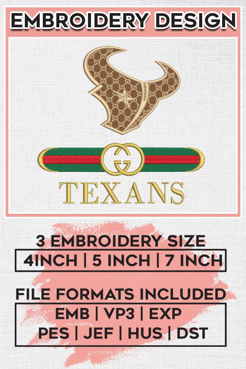 Guc.ci Houston Texans Logo Embroidery Design Files, NFL Texans, NFL Logo Embroidery Files, NFL Houston Texans Machine Embroidery Design, Digital Downlo