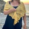 This half-circle shawl is worked from the top down and shaped like your view from the ship’s bow. After the garter tab cast-on, it’s smooth sailing through the body of stockinette. As you approach the border, you’ll hoist your sails through a series of eyelets and wavy lace motifs, before casting off and sailing into the sunset - with a lovely new shawl :)