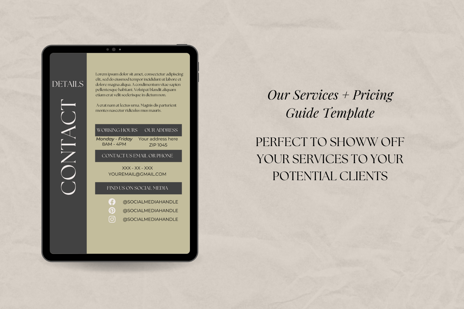 Service + Pricing Guide for coaches, social media managers, virtual assistants, freelancers, photographers, and more! The perfect guide to showcase what services and products you have to offer, your skills and your portfolio to your ideal client in a professional way.