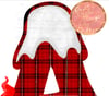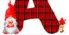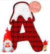 Red tartan, plaid Christmas alphabet with silver thread, with gnome, gonk detail plus cute little reindeer. 26 files. Sublimation or print.