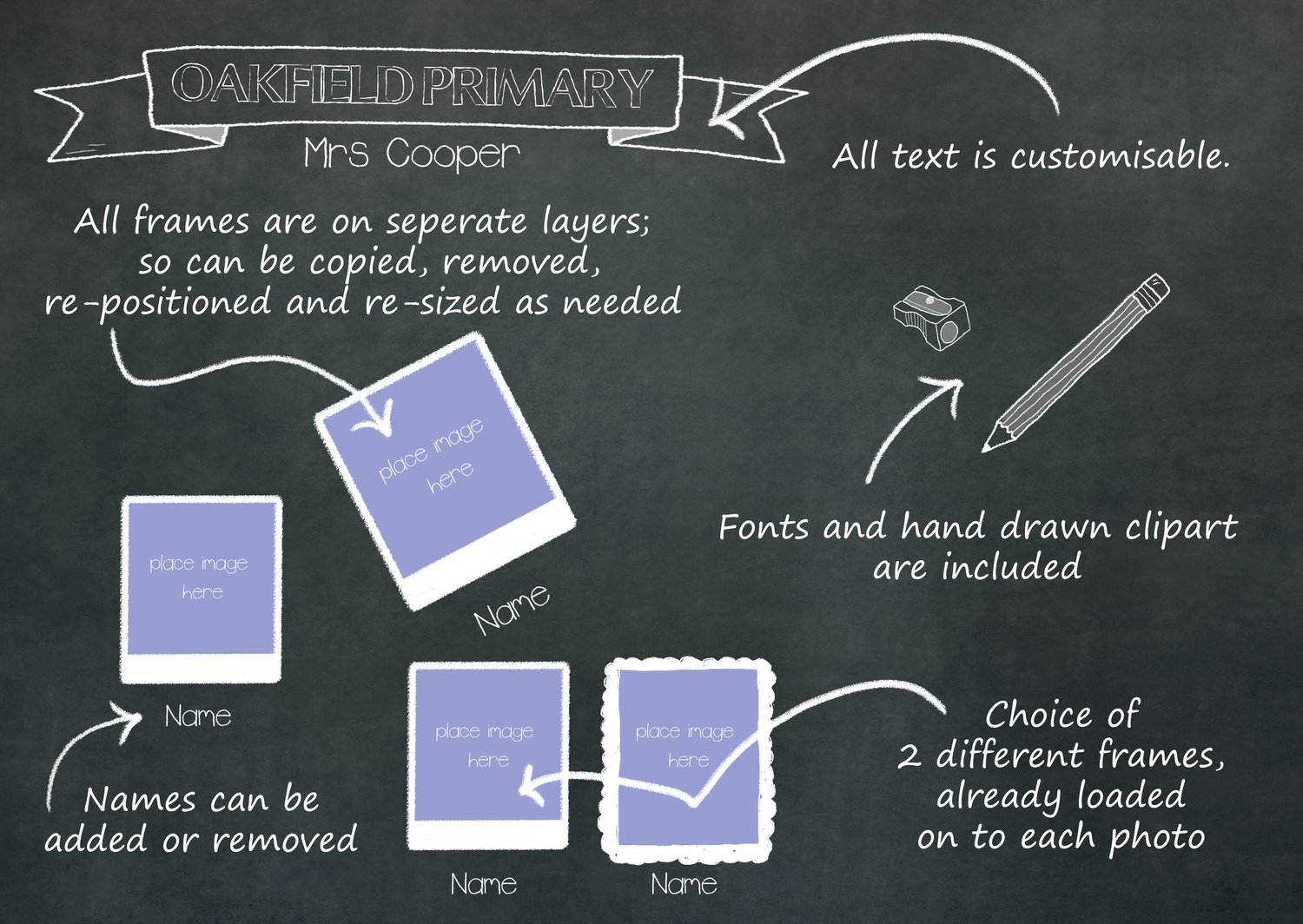 Simple drag and drop photo frames; all on separate layers, so you can easily remove, add or re-size individually.