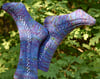 The pattern is adaptable to any type of needle arrangement; one or two (or even three if you’re clever) long or short circular needles, four or five double-pointed needles, or a flexible dpn set. Worked top-down with a simple lace panel nested in stockinette stitch that is mirrored on the second sock (or not). The pattern is easy to memorize so it’s not a problem to put down when Shire duties interrupt your knitting. To complete the options, you have a choice of three heels and three toes to mix and match as you like. The only problem you will have with this pattern is deciding which path to follow!