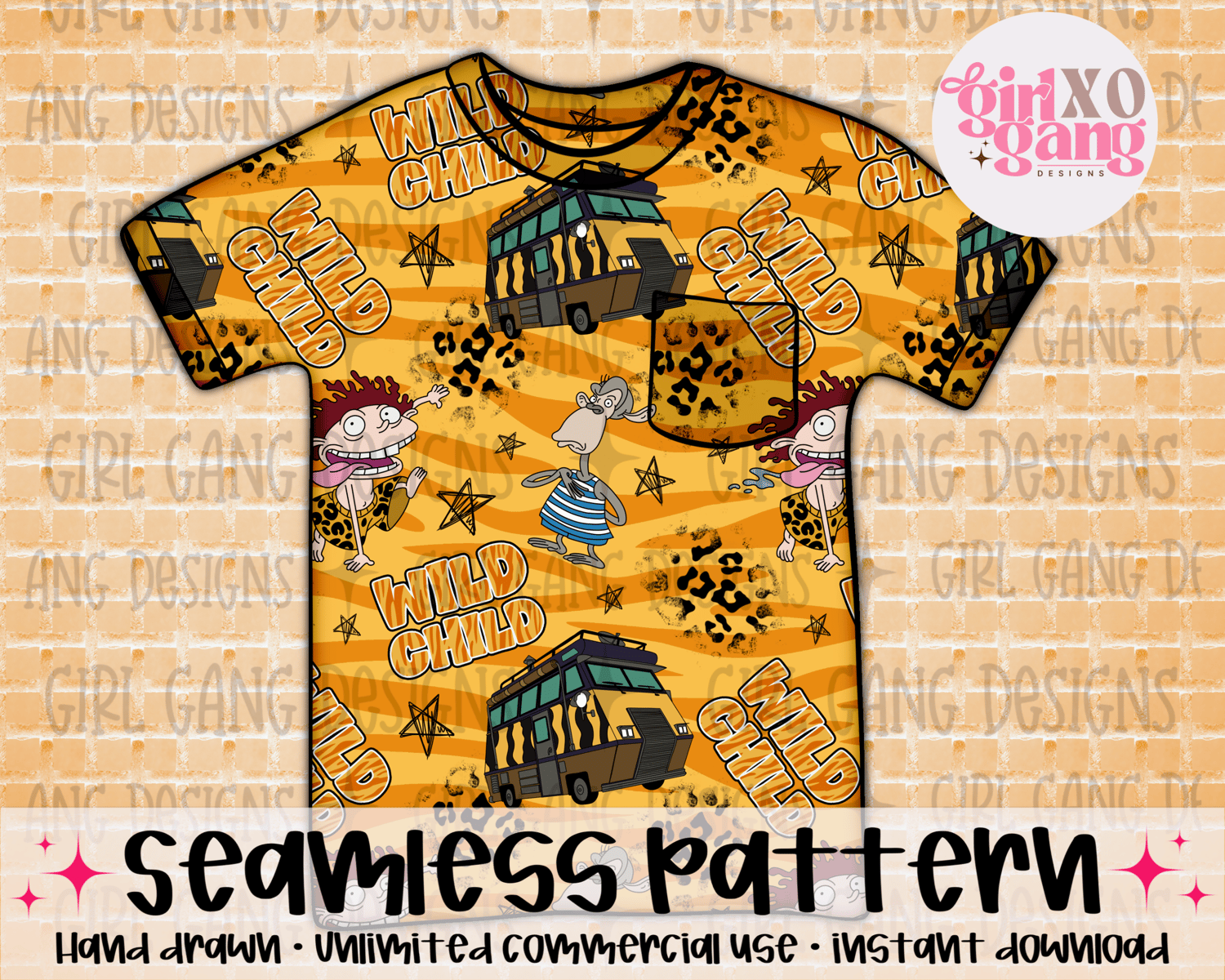 Wild child seamless animal print png with cords