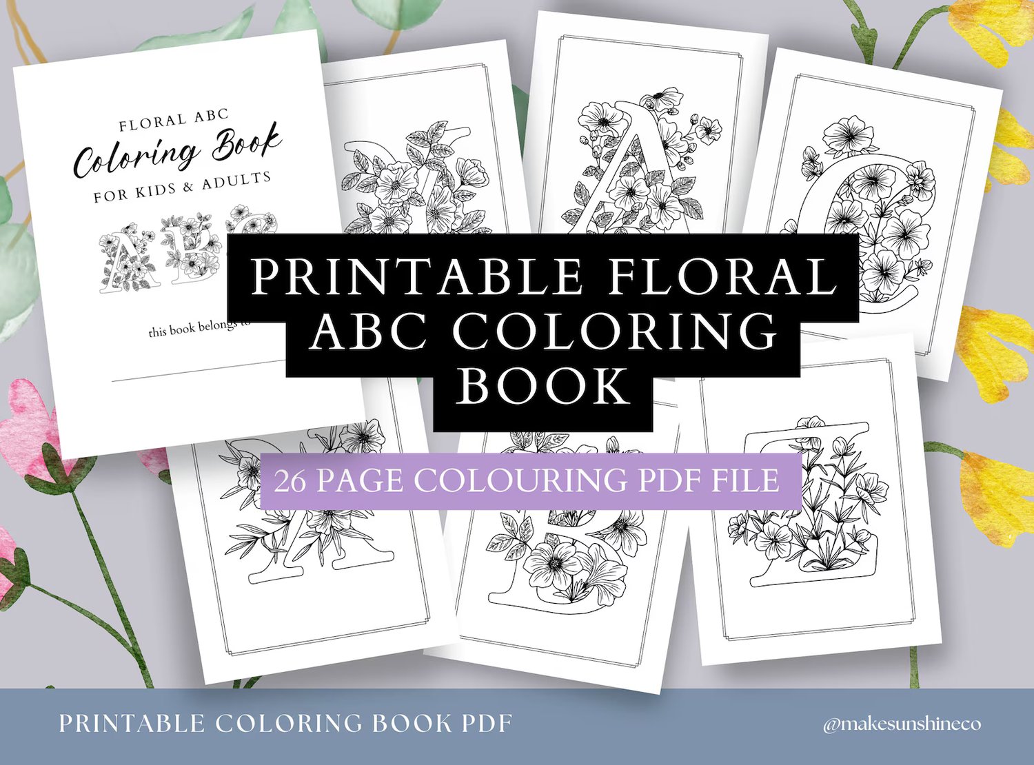 đ¸ A 26 page Printable Floral ABC Colouring book for Kids & Adults đ¸