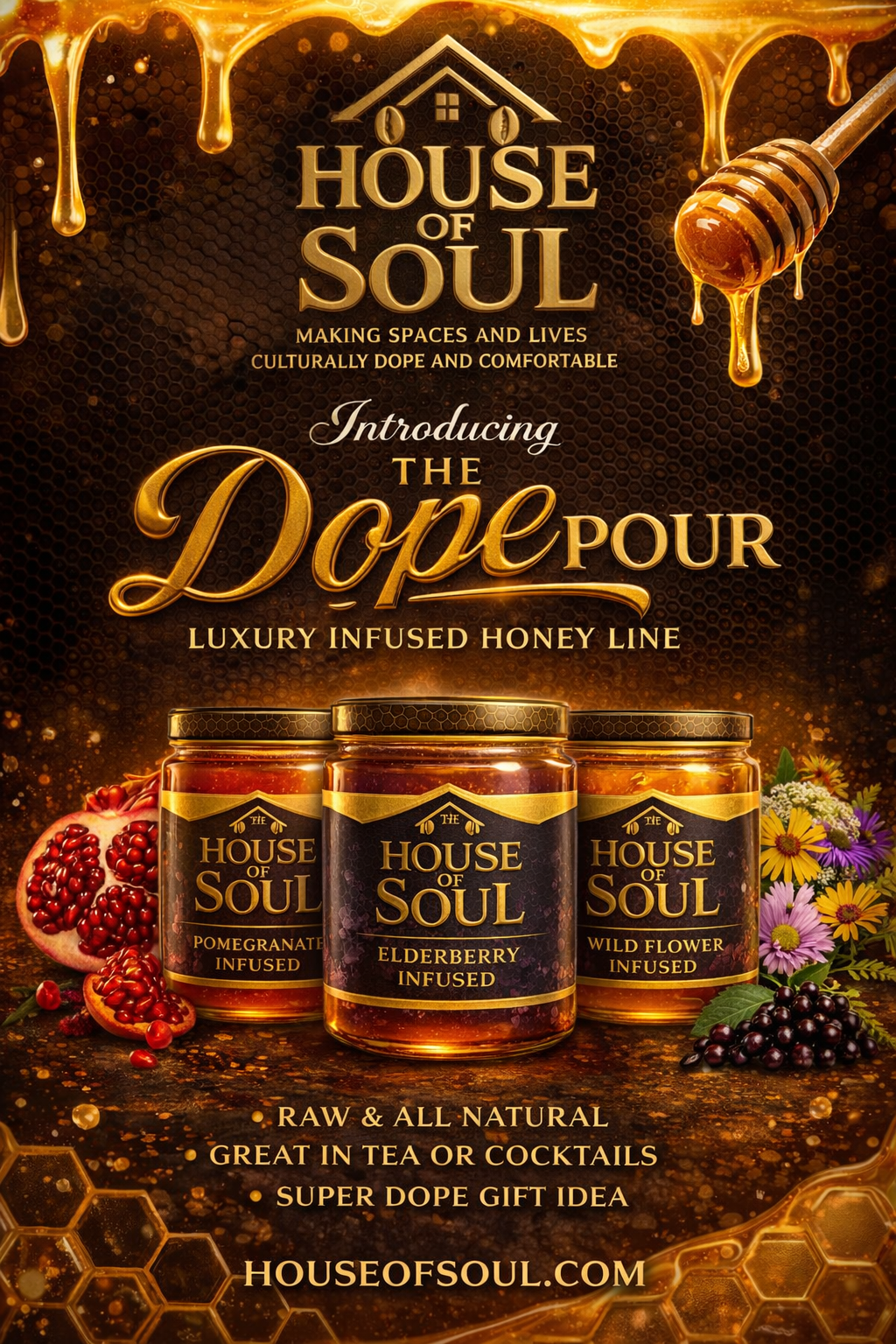 The Dope Pour™ Infused Honey Collection by House of Soul brings elevated taste to tea, cocktails, desserts, and everyday rituals.