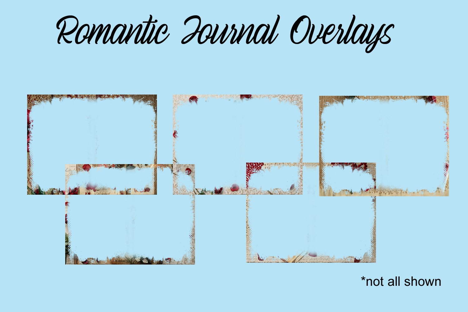 SHABBY-CHIC AESTHETIC: Each overlay captures that perfect "found in an attic" feel, with muted tones of cream, tan, and soft rose.