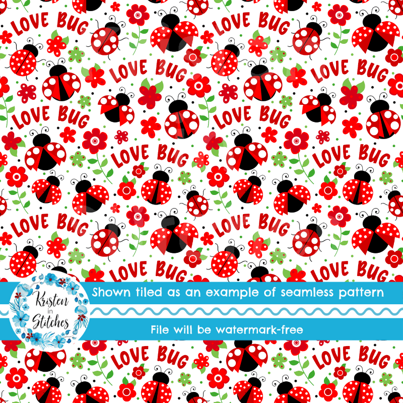 Red Ladybugs Seamless Pattern, Spring Love Bug