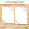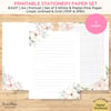 Printable Stationery Paper Set of 3 Modern White & Pastel Pink Floral Paper