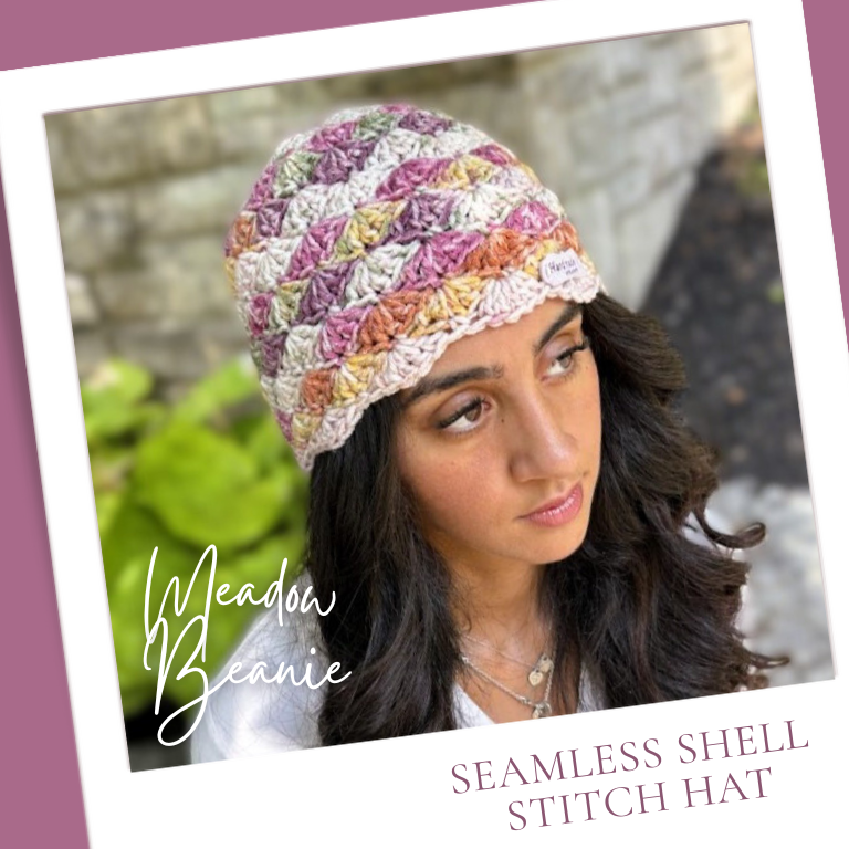 Create the beautiful Meadow Hat with this easy-to-follow crochet pattern! This stunning shell stitch beanie is worked seamlessly from the top down and includes 6 sizes from preemie to adult large.