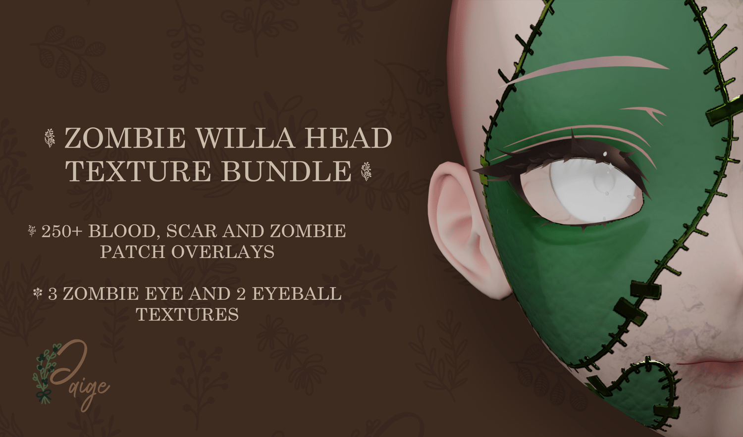 Transform your avatar into a spooky-cute or delightfully messy zombie with this ultra-versatile texture overlay pack! It includes 250+ high-quality PNGs, with pre-applied textures on all skintones and transparent overlays so you can mix and match to your heart’s content.