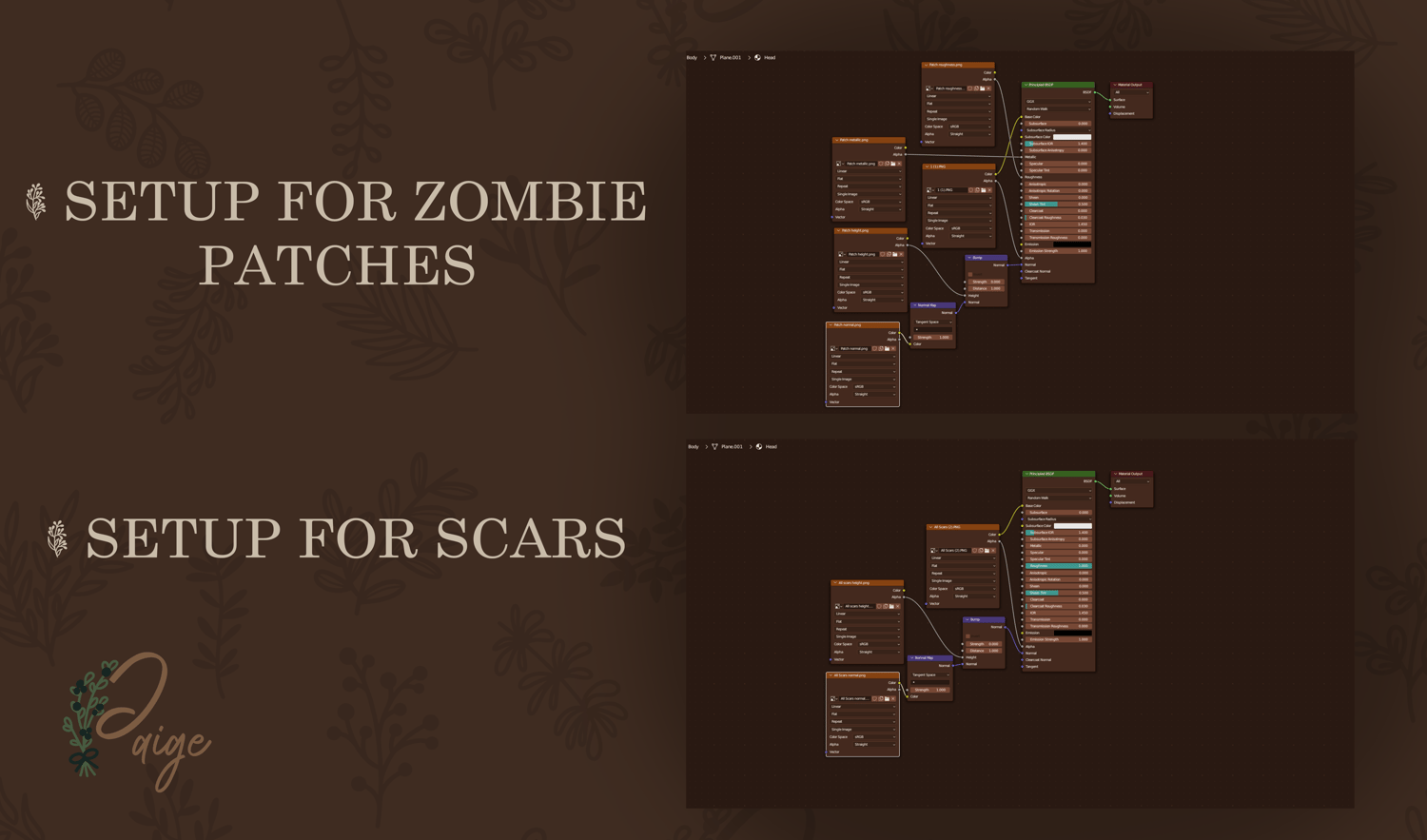 🍁 Refer to the material guide (last image) to achieve the shiny metal stitching and 3D scar effects!