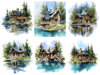Noon at the Lake – 15 Watercolor Forest Cabin Art Prints