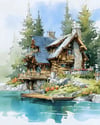 What You Get: Noon at the Lake – Watercolor Forest Cabin Art Prints