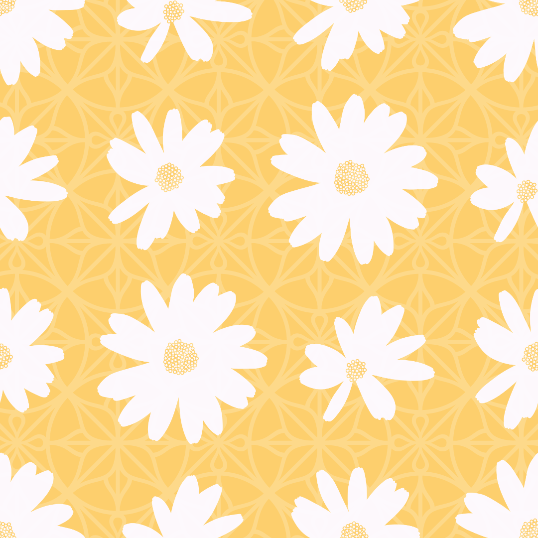 Daisy silhouette seamless illustration pattern. Cute happy flower wallpaper background.