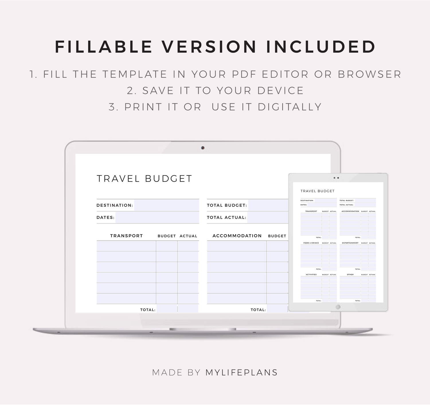 Travel Budget Planner, Printable & Fillable, A4/Letter Size, Instant Download