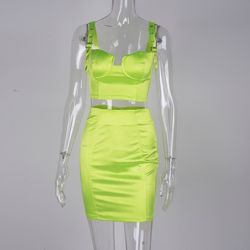 Buckle Down Satin Two Piece Set Summer Clothes For Women 2 Piece Outfits Push Up Crop Top Skirt Set Party Matching Sets