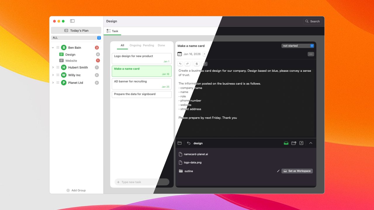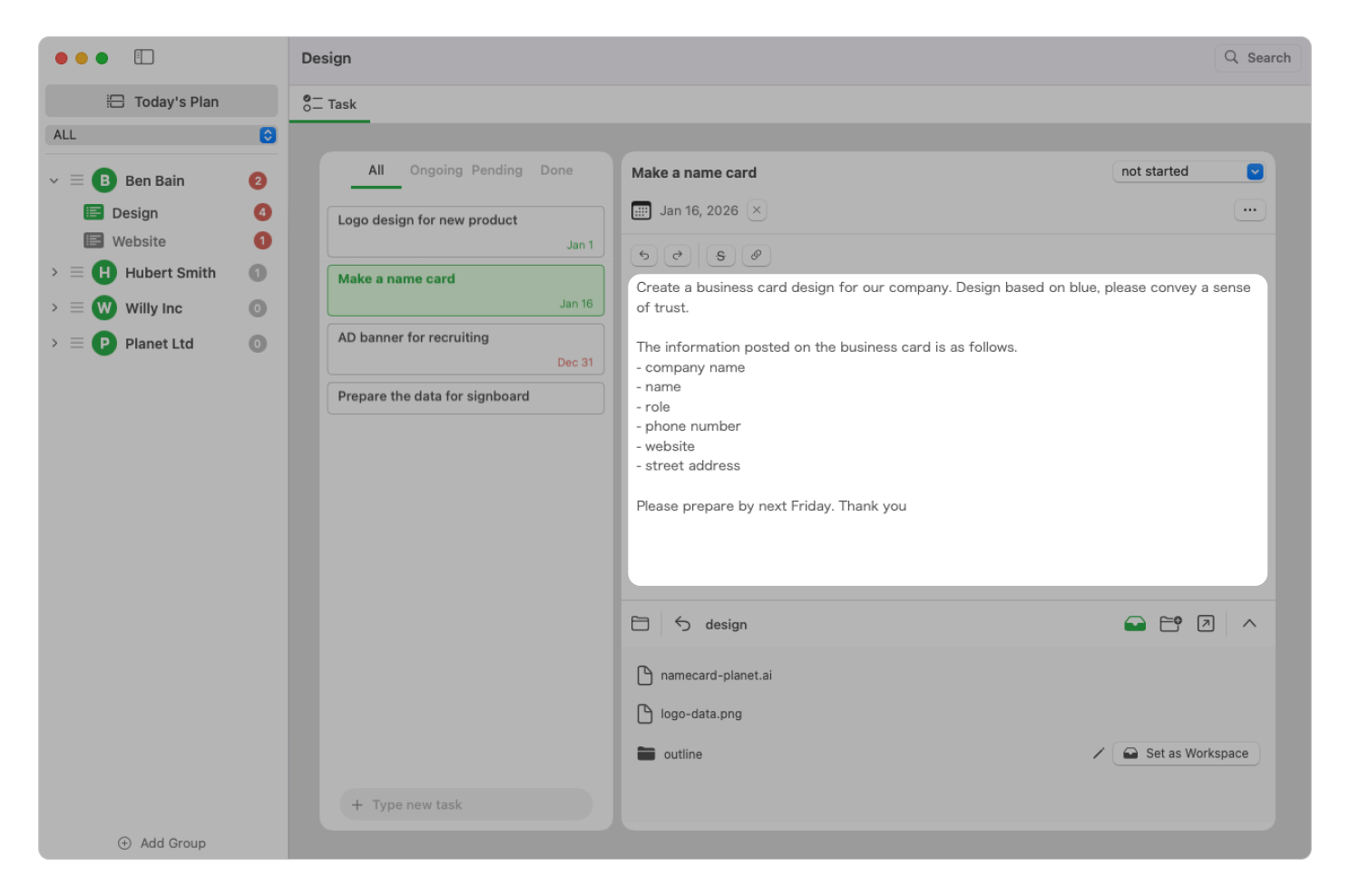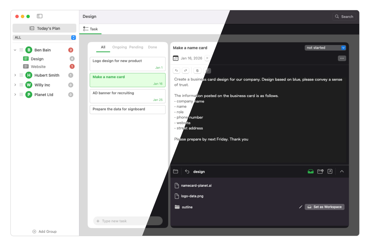 Easily create tasks and link them directly to local folders. No more wasting time searching for design files—just select a task to open its related folder instantly.