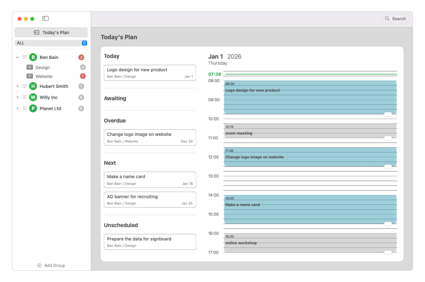 TaskDeck features a minimalist daily timeline designed to keep you focused on today's goals. Simply drag and arrange your tasks to map out your daily timeline.