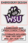 NCAA WSU Wildcats Football Team Claw Mascot Logo Embroidery Files, NCAA Weber State Wildcats Team Embroidery, NCAA College Football Teams, Weber State Team Emroidery, 3 sizes, Machine embroidery designs, Digital Download