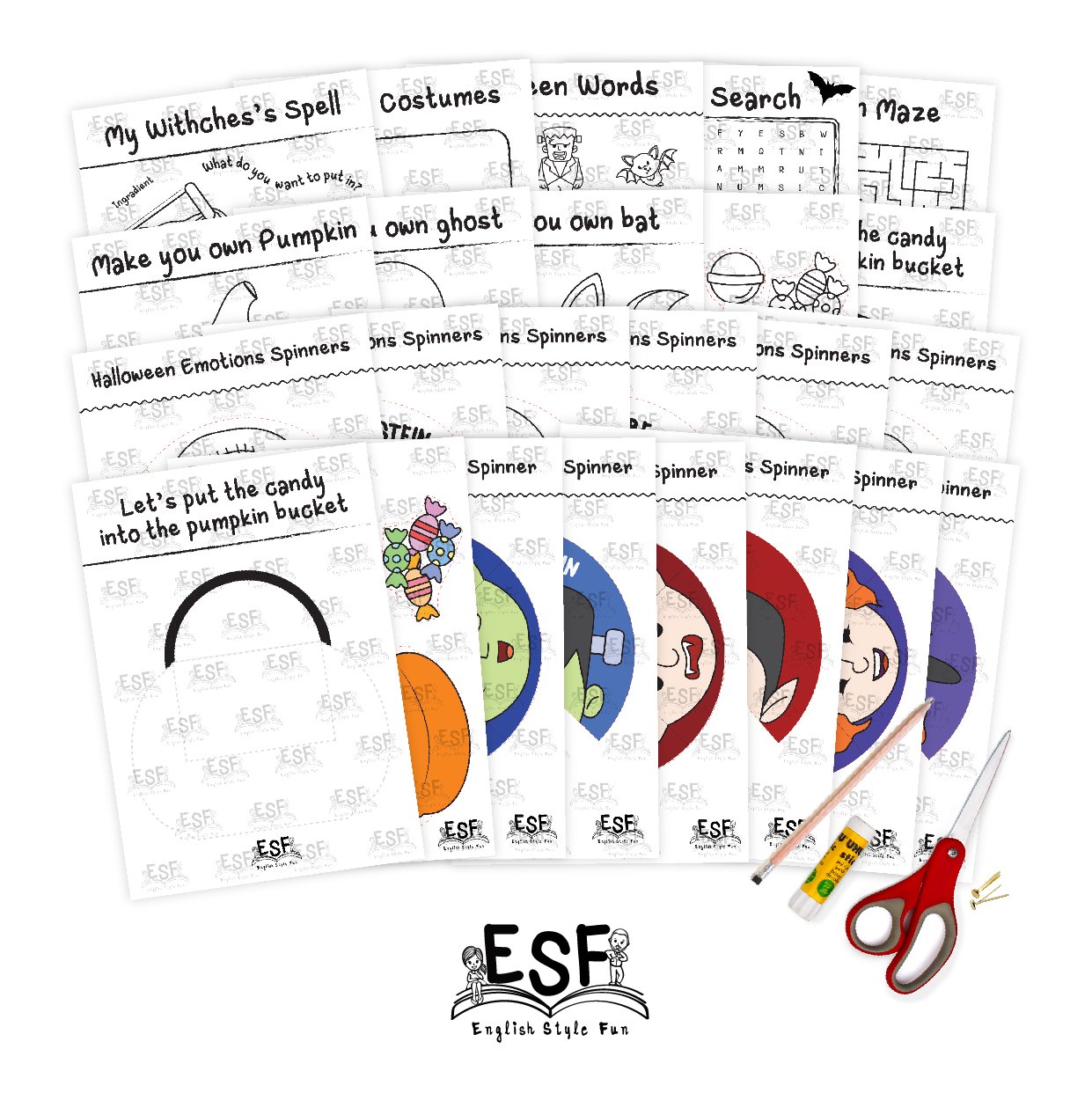 Project Based Learning: Spell making, Costume selection, Vocabulary, Word Search, Maze, Jack o lantern creation, Ghost creation, Bat creation, cut and paste pumpkin bucket with candy, emotion spinners (Frankenstein, Vampire, Witch)