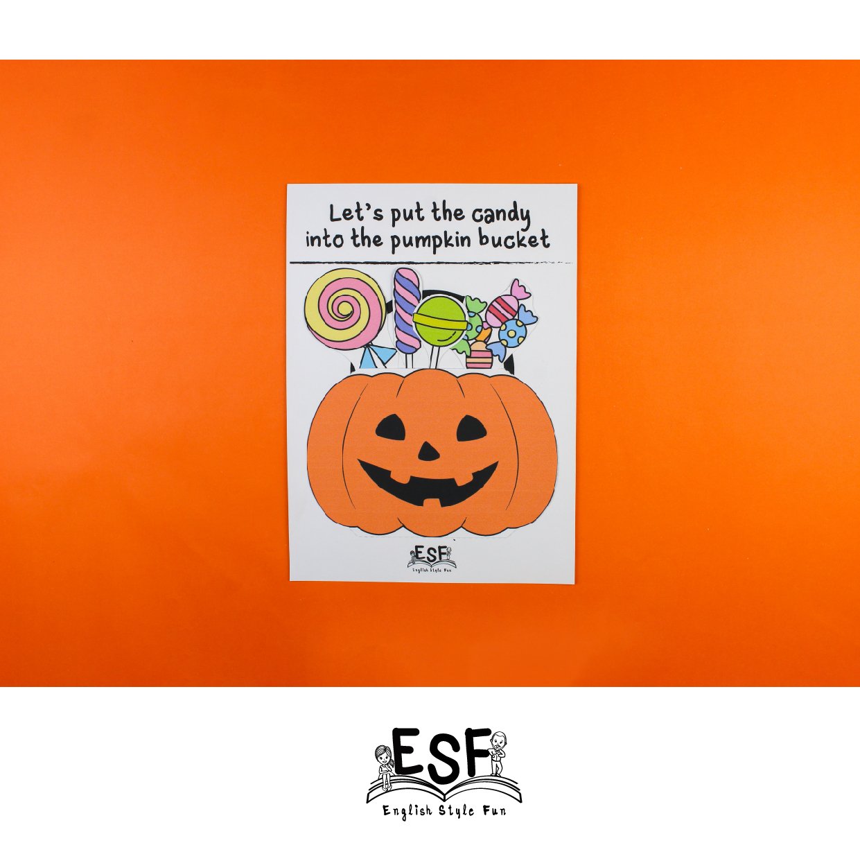 Bucket with candy: This project allows them to cut, color, and paste a pumpkin bucket together to use with some cut out candy for pretend play.