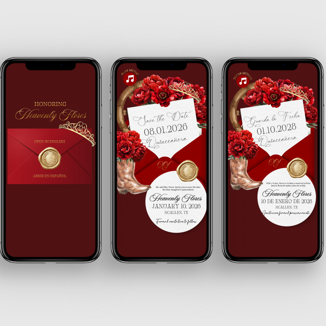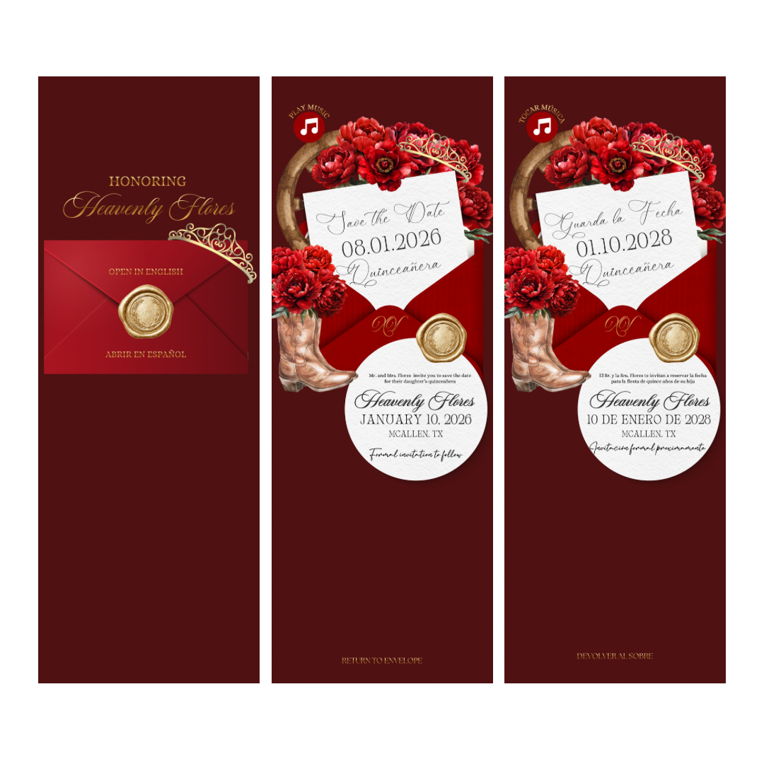 Red Rancho Theme Quinceañera Save the Date – Editable Private Website Invitation