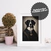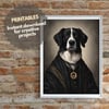 Printable dog portrait wall art. black and white dog elegant animal poster