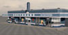 - Classic bus station-inspired building with retro signage