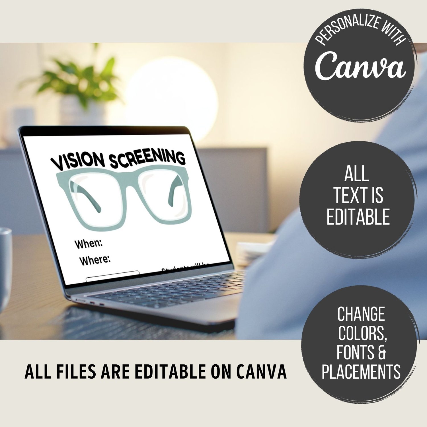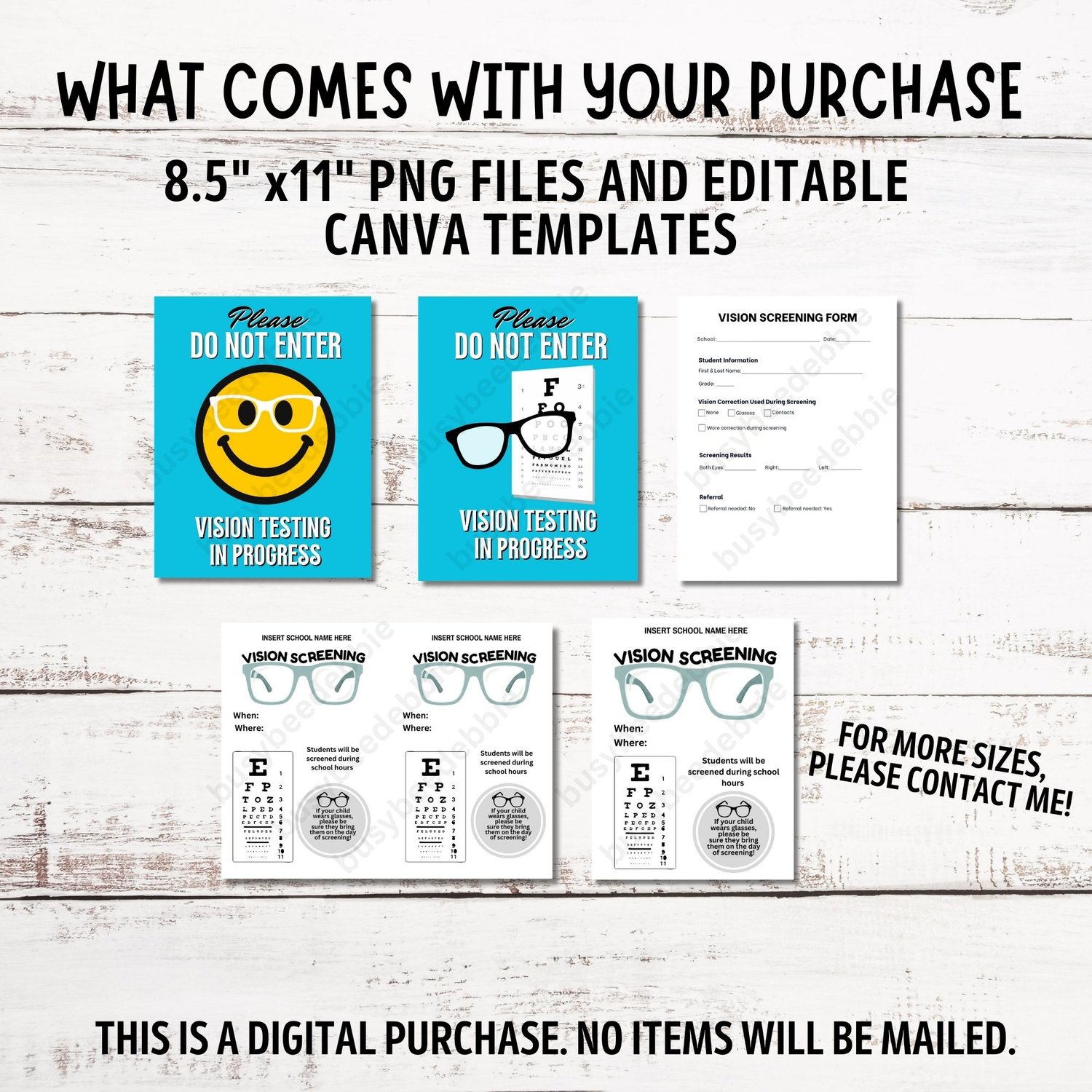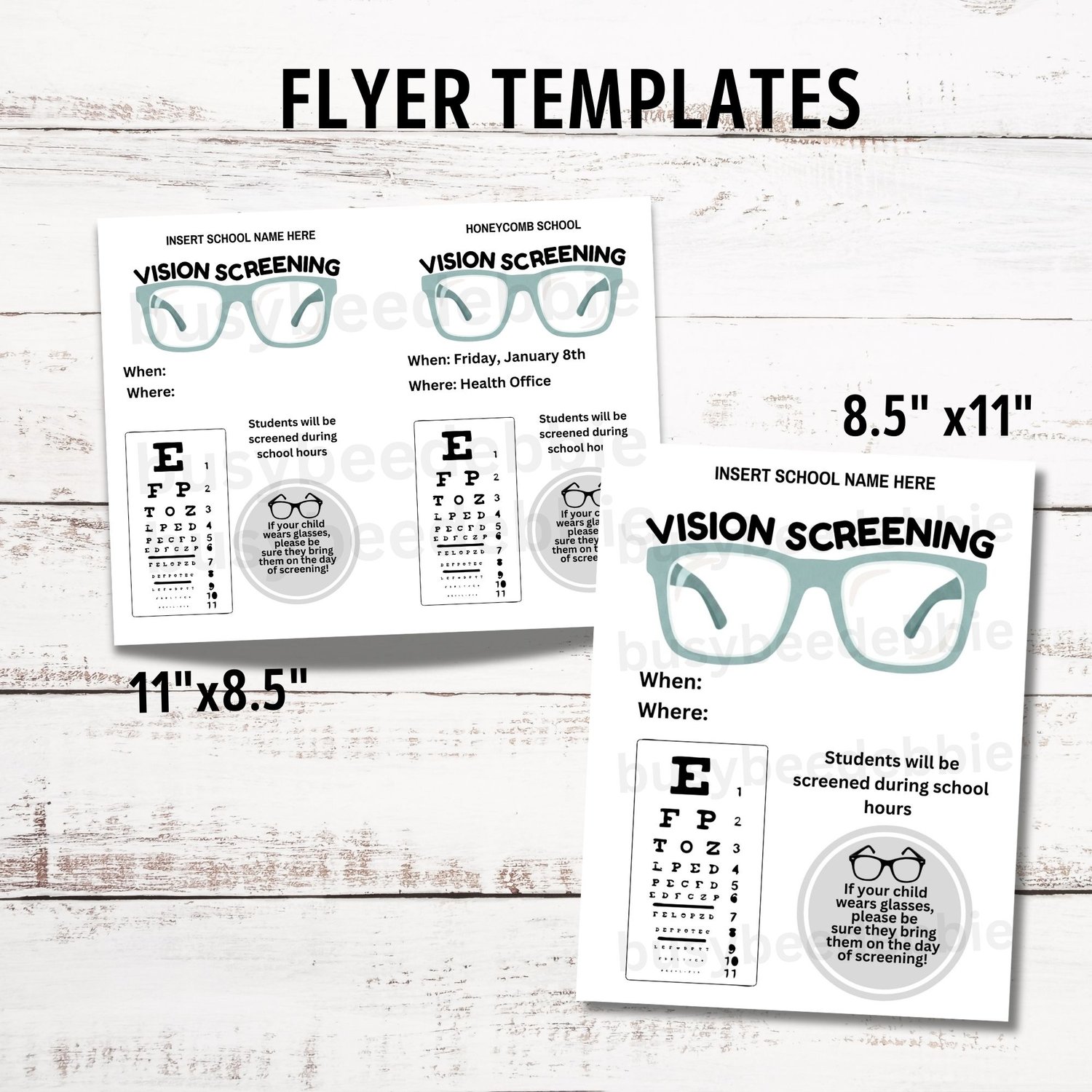School Nurse Vision Screening Bundle | Editable Canva Templates | Vision Test
