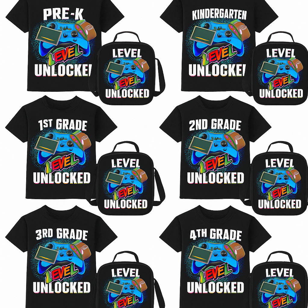 🎮 Level Unlocked PNG Bundle – Pre-K to 5th Grade